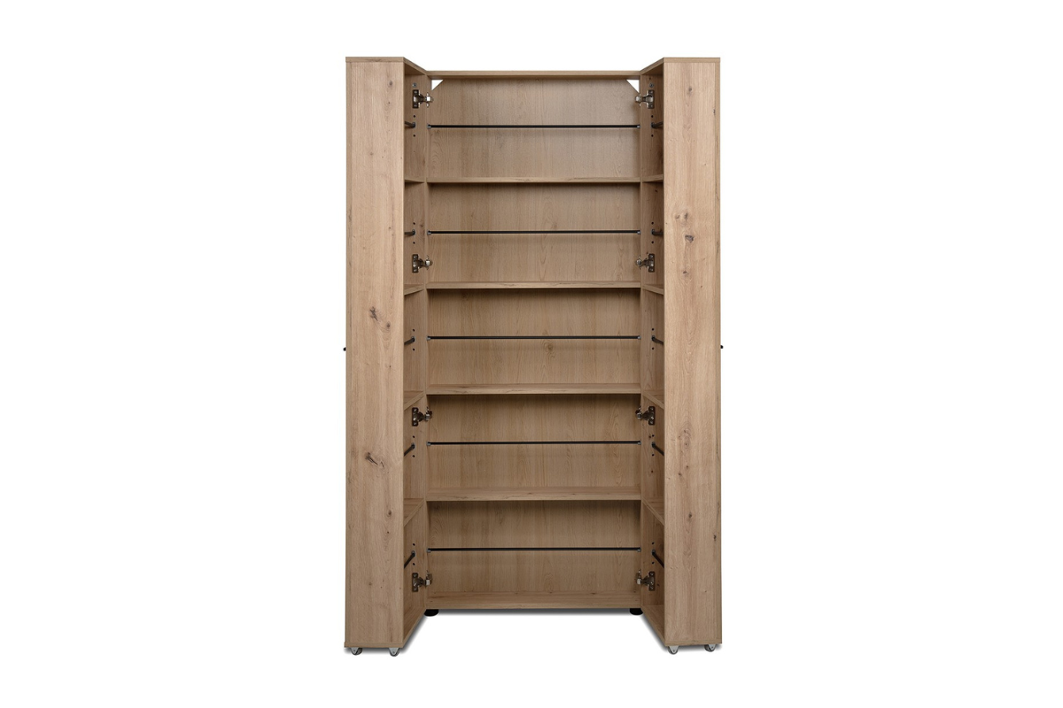 Découvrez notre armoire à chaussures Lugo spacieuse, offrant une capacité énorme ! Sa construction bien étudiée peut accueillir jusqu'à 30 paires de chaussures, réparties dans le corps de l'armoire et les compartiments des portes. Son magnifique décor en imitation chêne Artisan offre une surface confortable, agrémentée de 2 portes. À l'intérieur, des barres de maintien garantissent un rangement peu encombrant pour vos chaussures préférées. Des ferrures métalliques de haute qualité assurent la stabilité nécessaire. Venez la découvrir dans notre showroom Meubles Belot à Soignies.