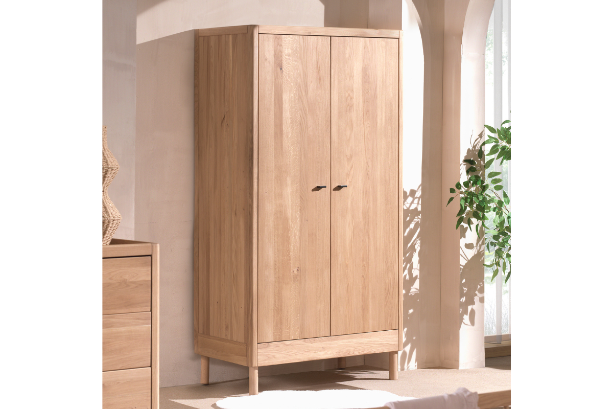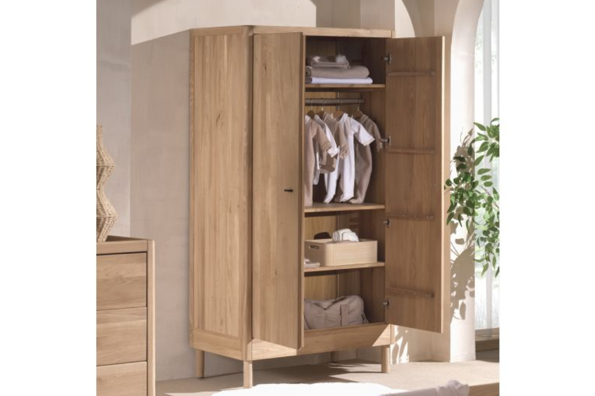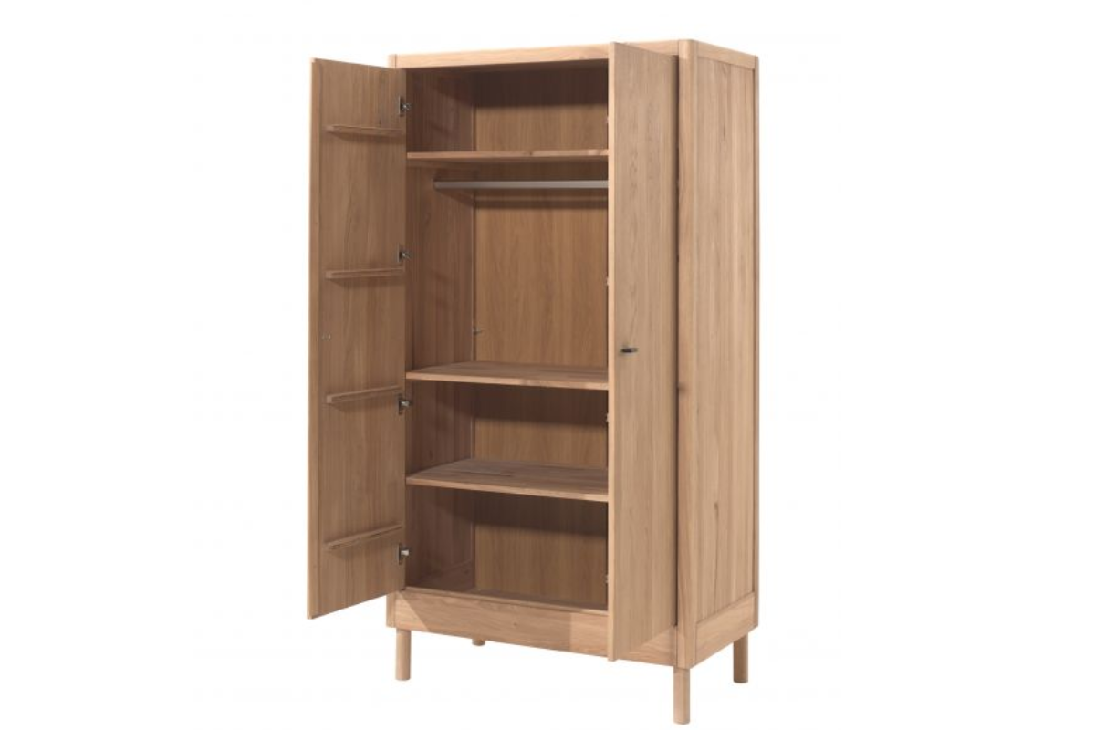 L'armoire 2 portes FORREST OAK de Vipack, en chêne européen de qualité, allie élégance et solidité. Avec 3 étagères et un rail, elle offre un rangement pratique et une finition chaleureuse qui sublime votre intérieur. À admirer dans notre showroom Meubles Belot !