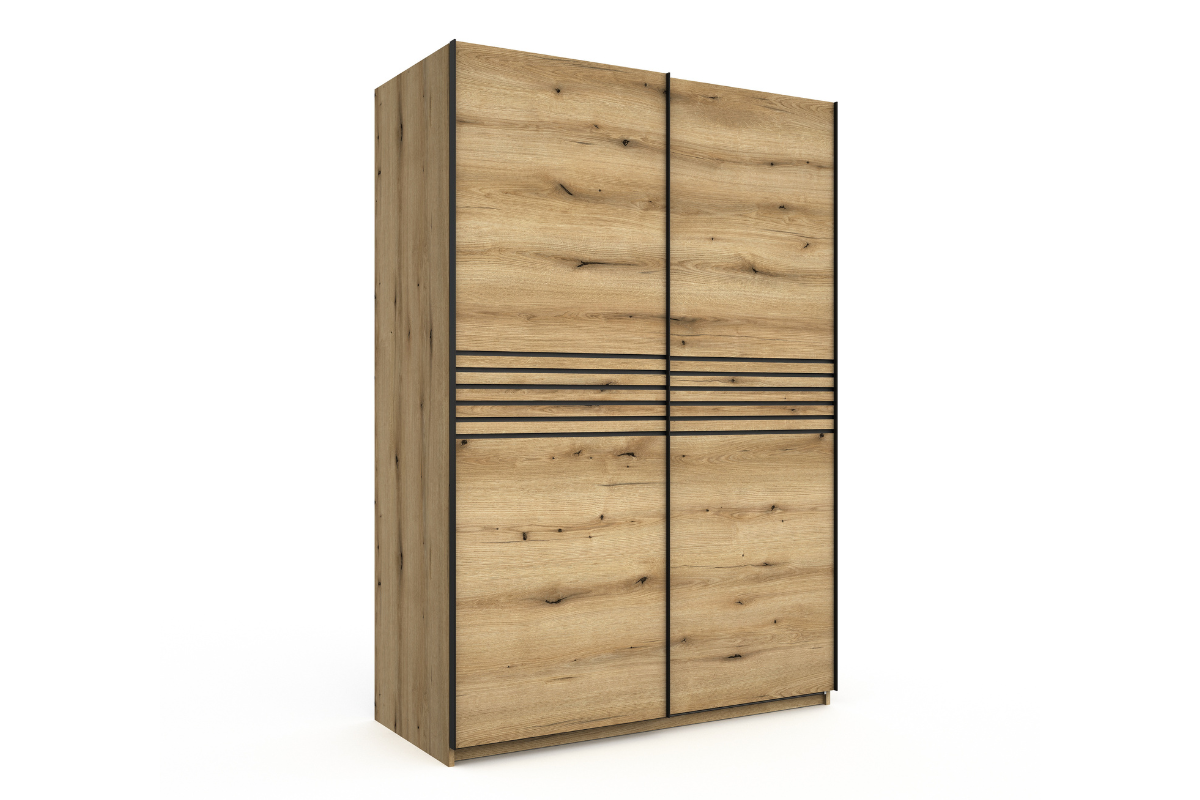 L’armoire Kato séduit par son design moderne alliant bois chaleureux et lignes graphiques noires. Avec ses portes coulissantes pratiques, elle offre un grand espace de rangement tout en apportant une touche élégante et contemporaine à la chambre. Un meuble aussi fonctionnel qu’esthétique, à découvrir chez Meubles Belot.