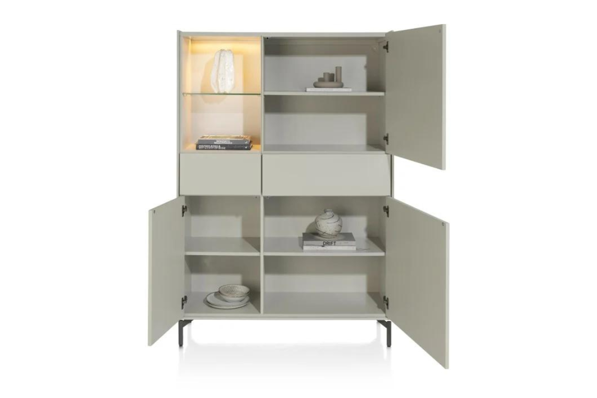 L'armoire Noon est une armoire fabriquée en MDF laqué de couleur silk grey. Elle compte 3 portes et 2 tiroirs dépourvus de poignées et équipés du système softclose. La niche avec éclairage LED est idéale pour mettre vos plus beaux objets en lumière. Venez la découvrir dans notre showroom Meubles Belot à Soignies.