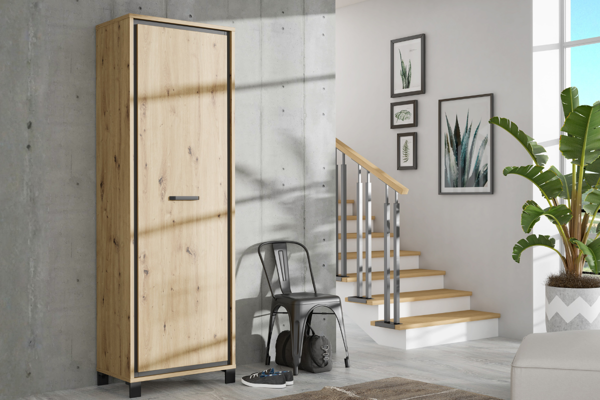 L’armoire Theo 1 porte séduit par son design moderne et authentique. Sa finition chêne artisan associée au chêne noir apporte un contraste élégant et plein de caractère. Compacte et fonctionnelle, elle offre un espace de rangement pratique pour organiser vos vêtements ou accessoires au quotidien. Un meuble à la fois simple et stylé, idéal pour compléter votre intérieur. À découvrir chez Meubles Belot.
