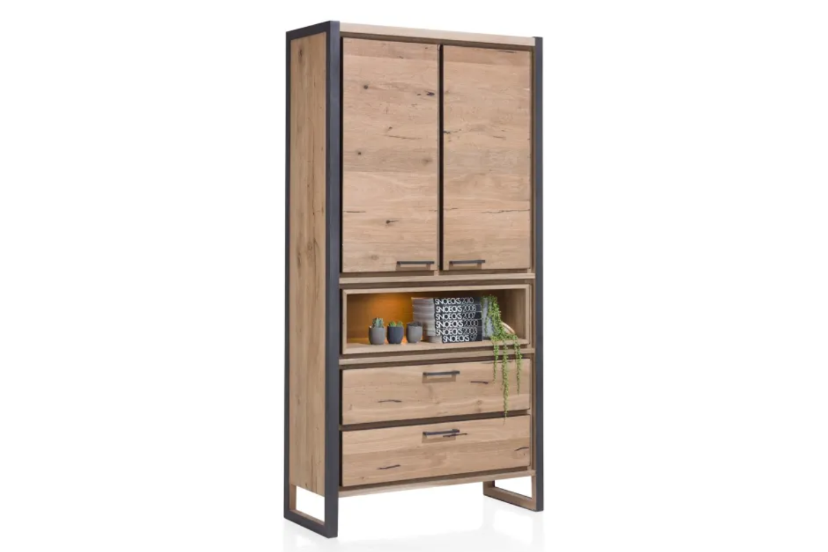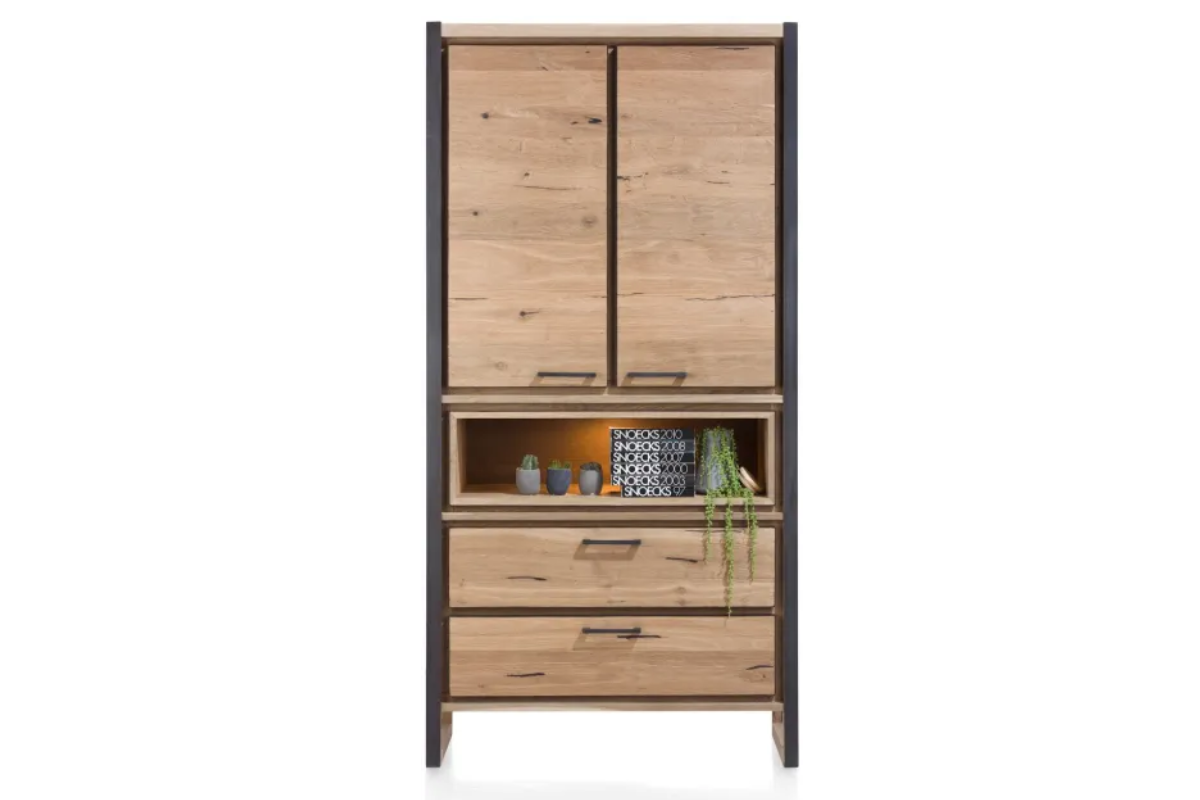 Le bar Metalo combine élégance et praticité avec ses 2 portes, 2 tiroirs et 1 niche, idéal pour organiser vos bouteilles et accessoires. Son design se distingue par un mix de bois et de métal, avec un placage en chêne teinte Railway Brown associé à une structure en métal couleur Desert Black, pour un style moderne et affirmé. La niche éclairée par LED met subtilement en valeur votre décoration. Un meuble de caractère à découvrir chez Meubles Belot.