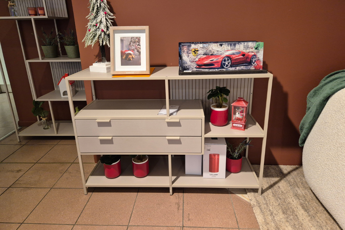 Modèle d'exposition ou stock restant. La bibliothèque Seaford avec 2 tiroirs et 3 étagères allie design industriel et praticité, grâce à sa structure en acier gris et son panneau arrière réversible. Une pièce idéale pour structurer votre espace avec style. À retrouver dans la sélection de Meubles Belot.