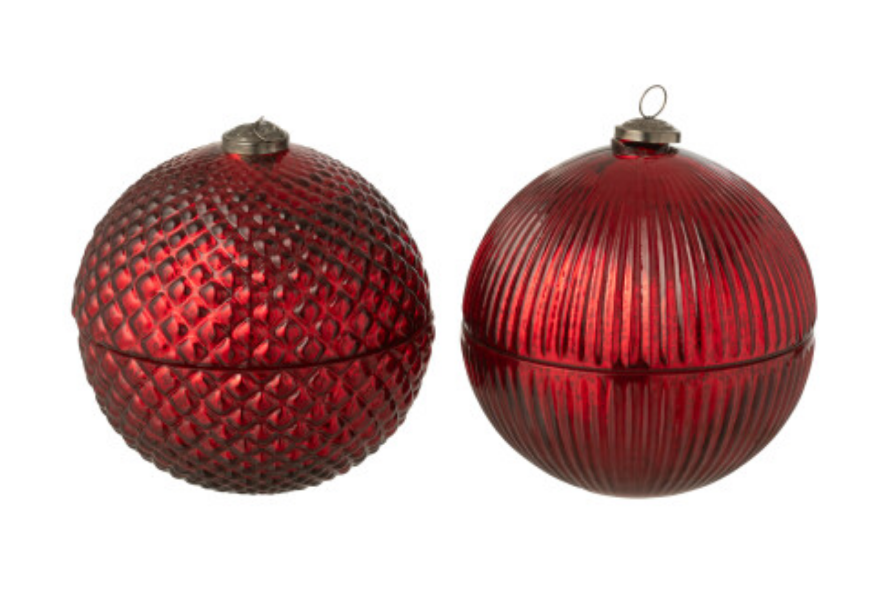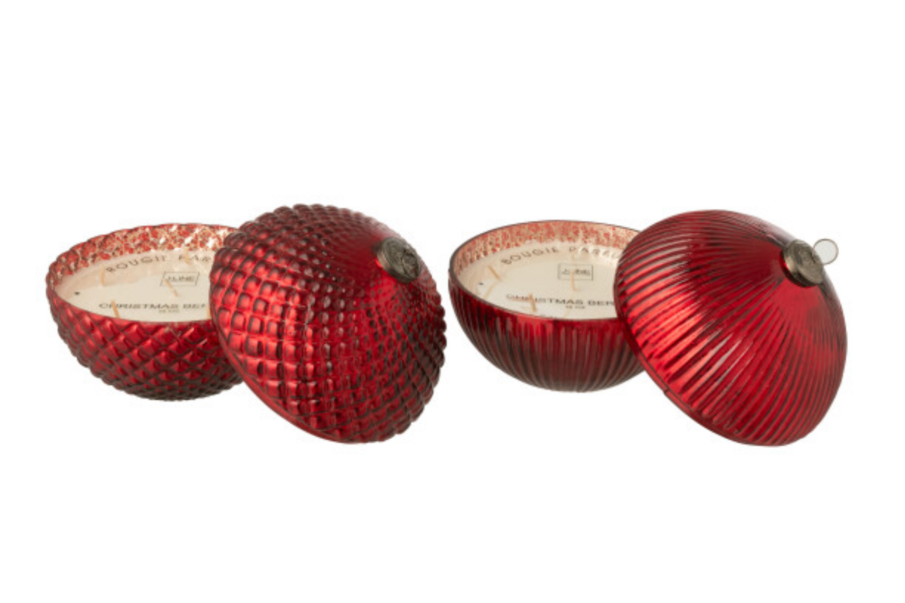 Ces bougies parfumées en forme de boule de Noël, en verre rouge et proposées par assortiment de 2, allient élégance et esprit festif. Leur lumière douce et leur parfum délicat créent une ambiance chaleureuse et raffinée pour les fêtes — à découvrir chez Meubles Belot.