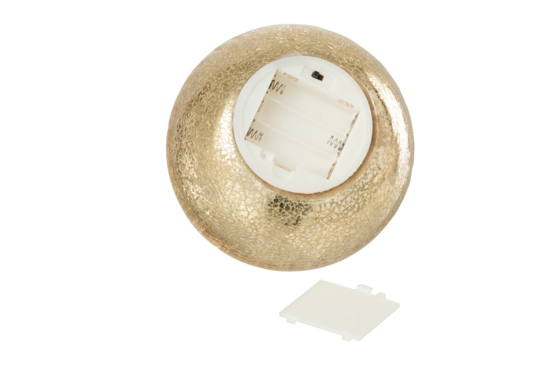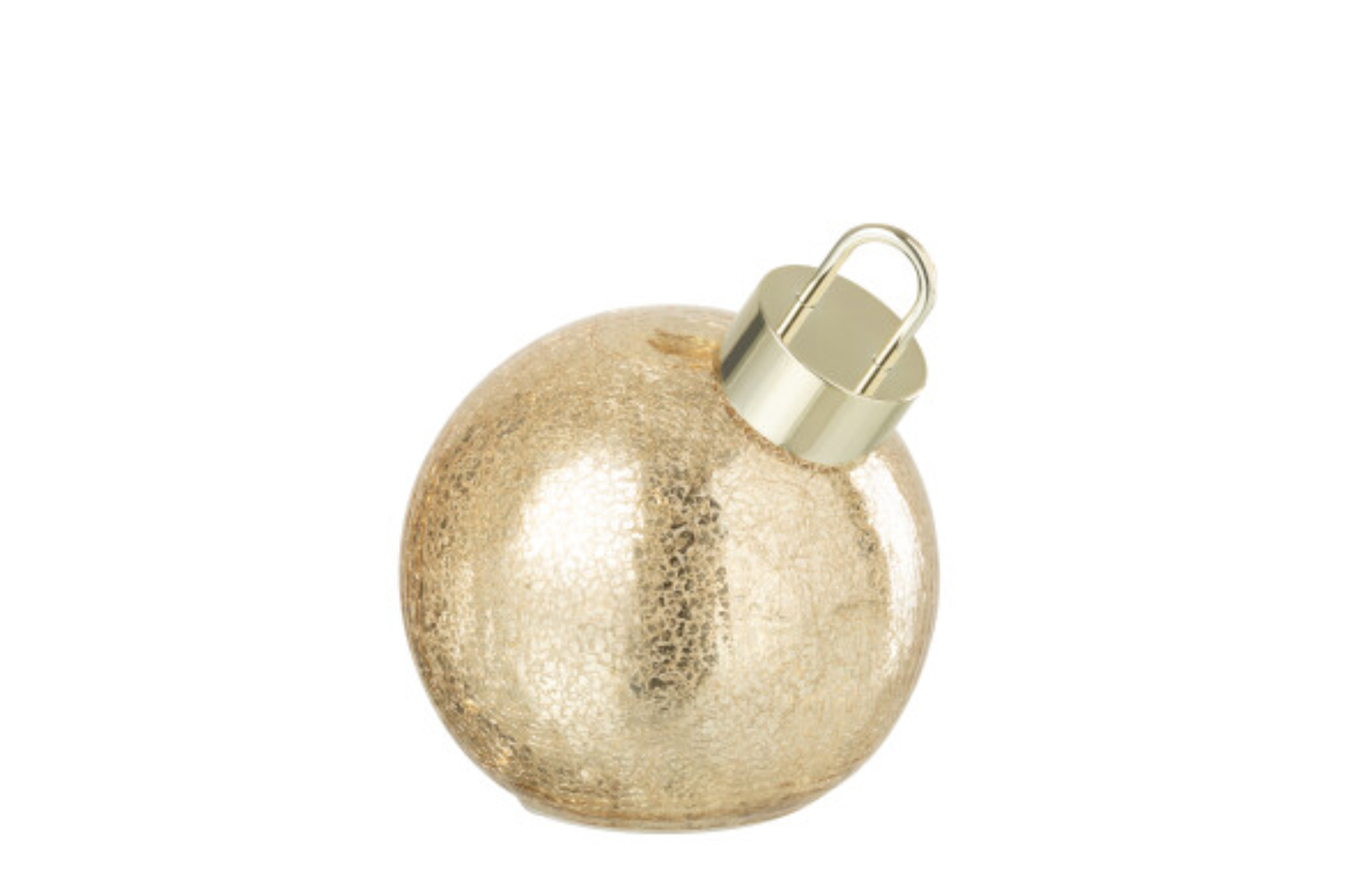 Cette boule de Noël LED en verre doré diffuse une lumière douce et scintillante, idéale pour créer une ambiance féérique. Son design raffiné et sa finition brillante en font une décoration élégante et chaleureuse pour les fêtes, à découvrir chez Meubles Belot.