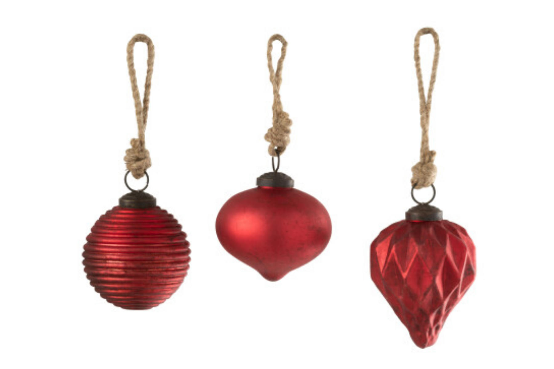 Ces boules de Noël en verre oxydé rouge, proposées par assortiment de trois, apportent une touche chaleureuse et traditionnelle à votre décoration. Leur finition artisanale et leur charme rétro illumineront votre sapin avec élégance, à découvrir chez Meubles Belot.
