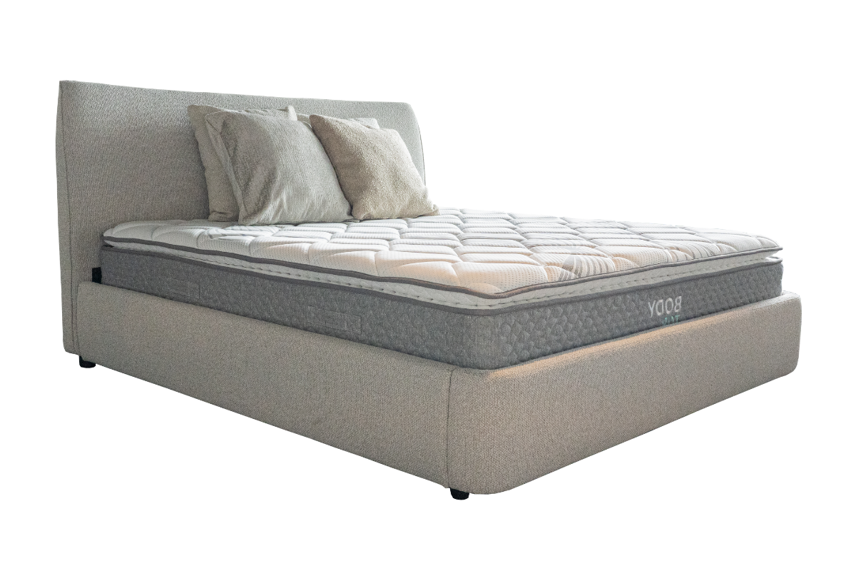 Le Boxspring ARCA 160 signé Revor allie raffinement et bien-être. Il se compose d’une structure de lit solide habillée d’un tissu doux, d’une tête de lit coordonnée et d’un matelas Body Cool intégrant une mousse à mémoire de forme, offrant un soutien optimal et un confort enveloppant. Ce boxspring dispose également d’un coffre de rangement intégré sous le matelas, idéal pour optimiser l’espace. Un ensemble harmonieux pensé pour des nuits réparatrices, à découvrir chez Meubles Belot.
