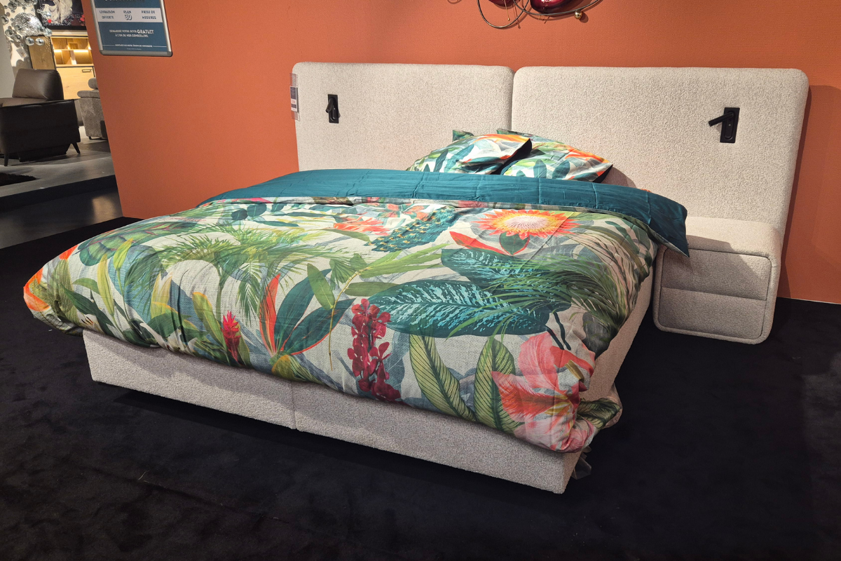 Modèle d'exposition. Offrez-vous des nuits d’exception avec le boxspring HILLS. Conçu pour un couchage généreux en 180x200 cm, il séduit par son design raffiné et sa finition en tissu Claros 03. Pratique et moderne, il est équipé de chevets intégrés ainsi que d'un éclairage sur la tête de lit, apportant confort et fonctionnalité à votre chambre. Alliant élégance et bien-être, ce lit devient la pièce maîtresse d’un espace nuit cosy et sophistiqué. Un choix idéal pour conjuguer style et confort, à découvrir chez Meubles Belot.