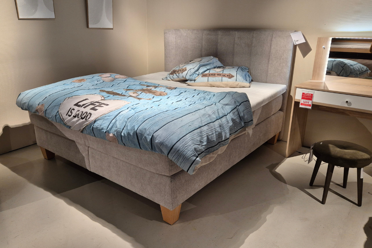 Modèle d'exposition. Le boxspring Nyx allie élégance et confort pour transformer votre chambre en véritable havre de paix. Revêtu du tissu raffiné Famosa Natur, il séduit par ses lignes sobres et sa tête de lit qui apporte une touche de modernité tout en conservant une allure intemporelle. Ses pieds en bois naturel laqué ajoutent chaleur et authenticité à l’ensemble. Côté confort, le matelas MS 358 à ressorts ensachés 7 zones offre un soutien ergonomique optimal en confort médium, parfaitement équilibré pour un sommeil réparateur. Le topper en mousse froide vient parfaire l’accueil en apportant douceur et maintien. Un lit pensé pour conjuguer design, bien-être et qualité, à retrouver chez Meubles Belot.