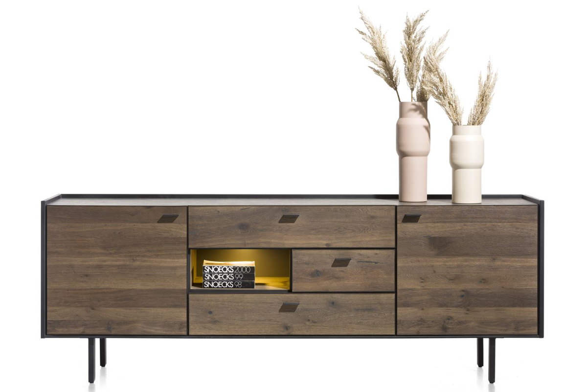 Le dressoir FRESNO est une armoire robuste et épurée qui trouvera sa place essentiellement dans les intérieurs industriels et scandinaves. Le dressoir FRESNO arbore un style moderne mais chaleureux grâce au chêne de couleur burned. Ce dressoir mesure 220 cm de large, possède un plateau en HPL style béton et compte deux portes, trois tiroirs et une niche avec éclairage LED. Venez le découvrir dans notre showroom Meubles Belot à Soignies.