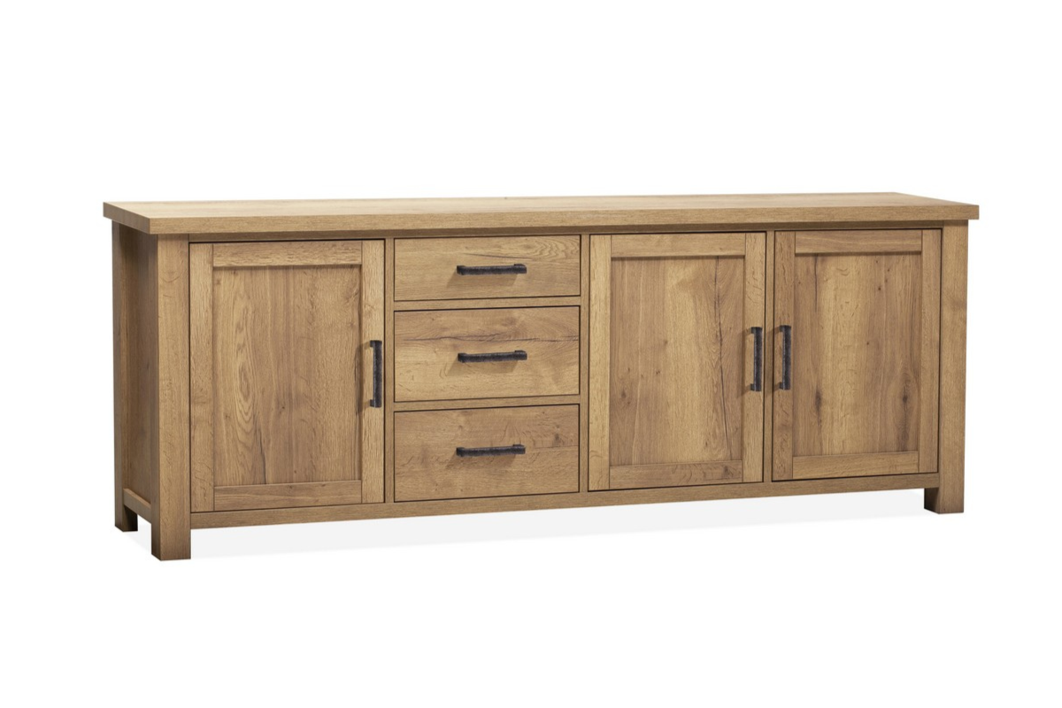 Dressoir 3 portes et 3 tiroirs de la collection Newcastle de Maxfurn en lamulux barley. Lamulux représente la solution parfaite pour le consommateur qui veut l’expérience d’un matériel massif sans les désavantages de l’entretien et le coût d’un meuble massif. Lamulux a la ressemblance et le même touché que le bois massif ! Fermeture soft-close.