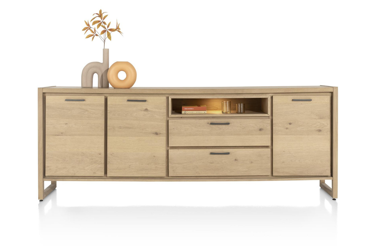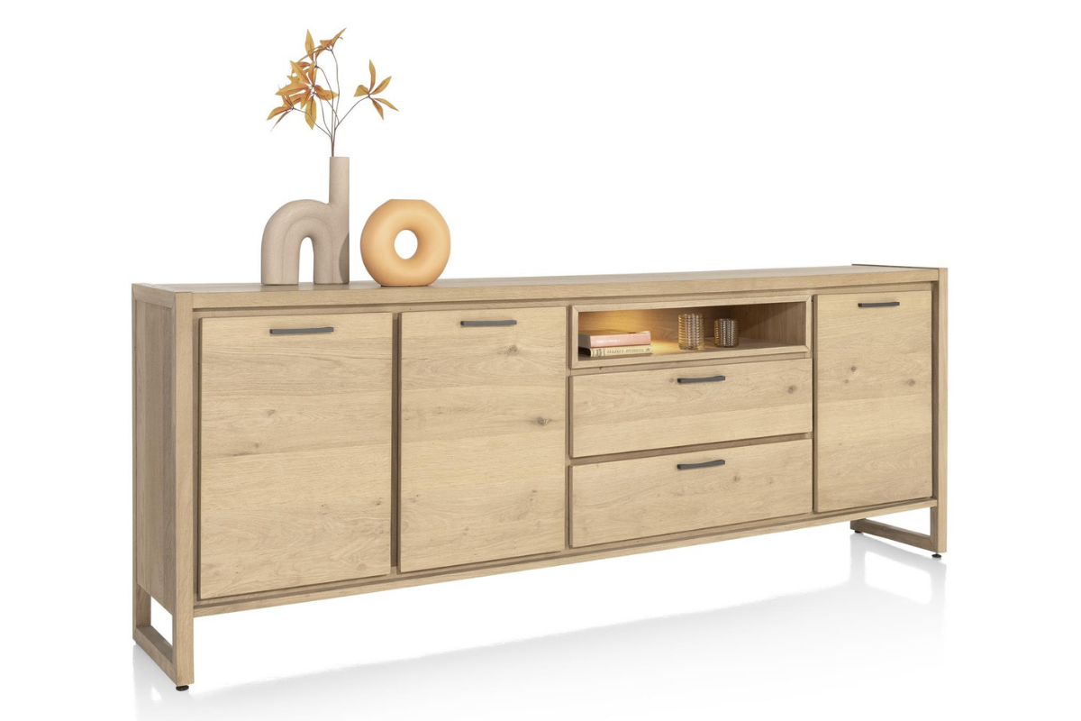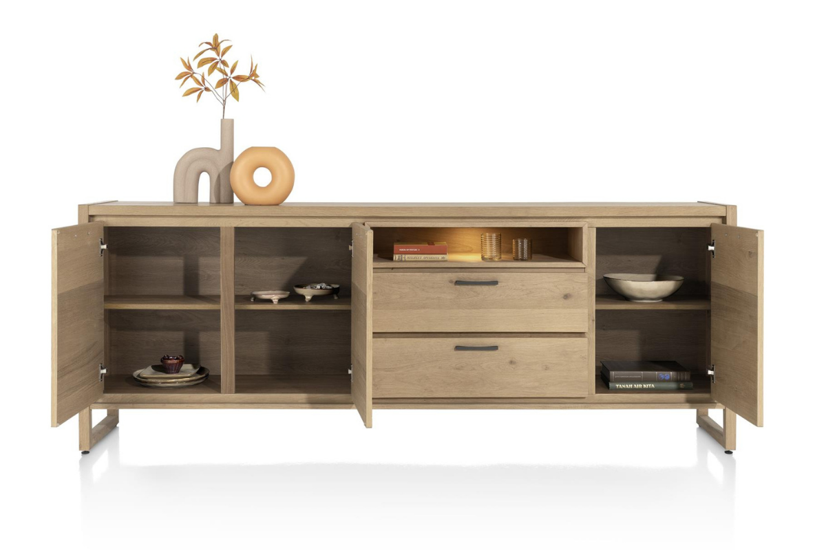 Le buffet Nystead de la marque Henders and Hazel est un meuble élégant et pratique. Composé de trois armoires, de deux tiroirs et d'une niche ouverte, il offre un espace de rangement généreux tout en apportant une touche contemporaine à votre intérieur. Son éclairage intégré met en valeur vos objets décoratifs ou vos livres, ajoutant une ambiance chaleureuse. Ce buffet allie esthétique et fonctionnalité pour sublimer votre salon ou salle à manger. Venez découvrir ce meuble exceptionnel dans notre showroom Meubles Belot à Soignies.
