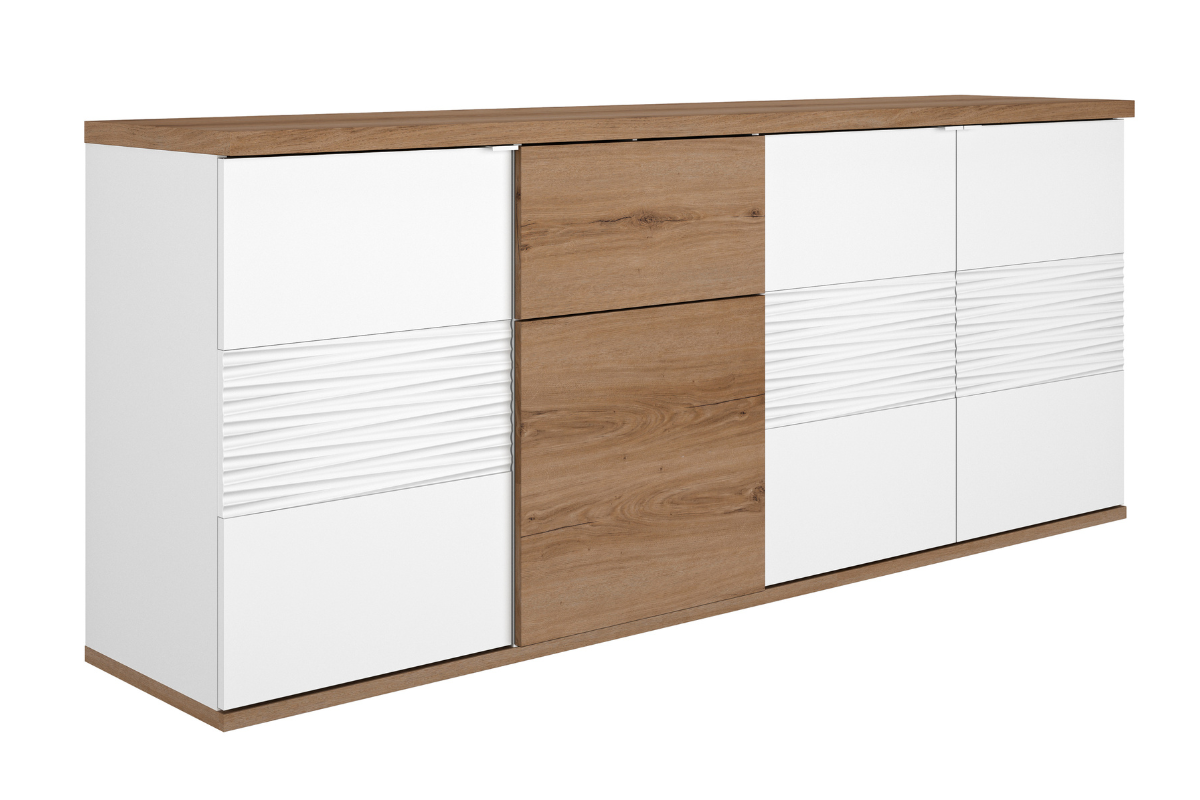 Apportez éclat et élégance à votre intérieur avec le buffet Otello (208x87x47 cm). Sa finition blanc brillant associée au décor bois crée un style contemporain et lumineux. Fonctionnel avec ses 4 portes et 1 tiroir, il offre un vaste espace de rangement tout en sublimant votre pièce, à découvrir chez Meubles Belot.