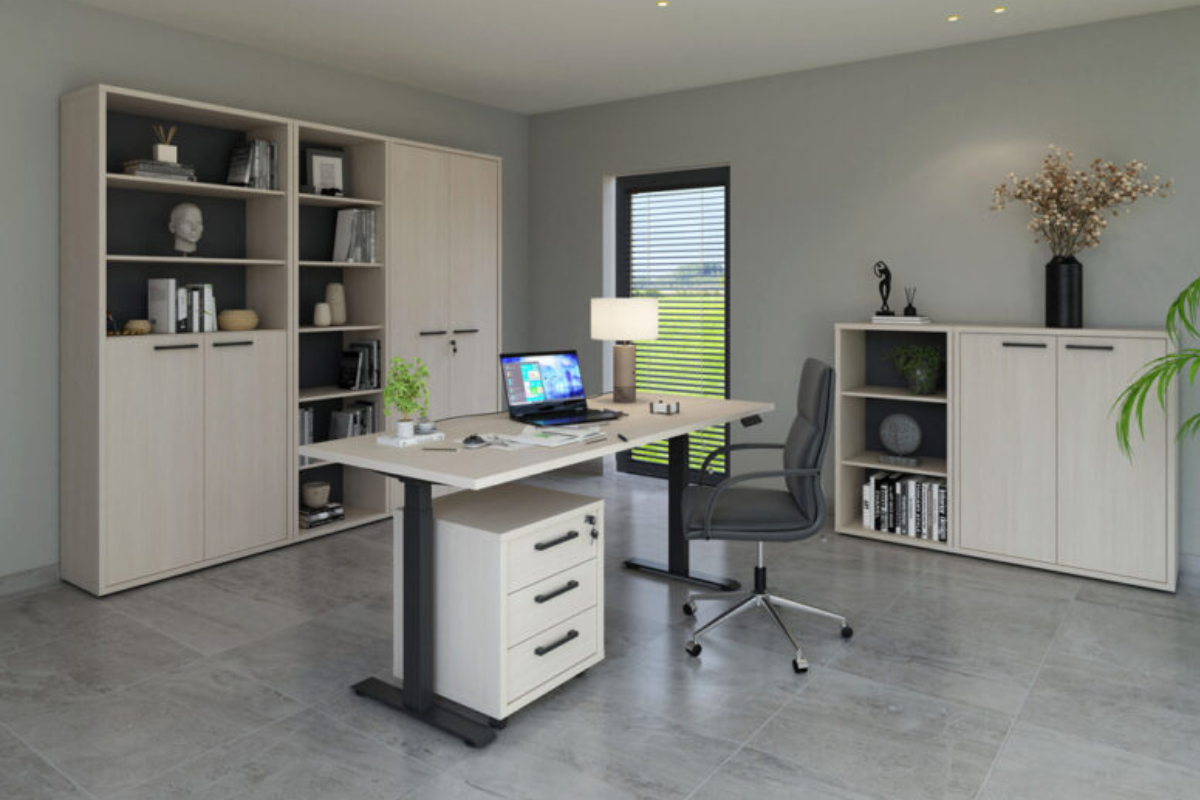Le bureau électrique Flexo en finition Bolivar Wood allie modernité et confort de travail. Grâce à son système de réglage électrique en hauteur, il s’adapte facilement à vos besoins pour alterner entre position assise et debout. Son design épuré et sa finition bois au caractère marqué apportent une touche chaleureuse et contemporaine à votre espace de travail. À découvrir chez Meubles Belot.