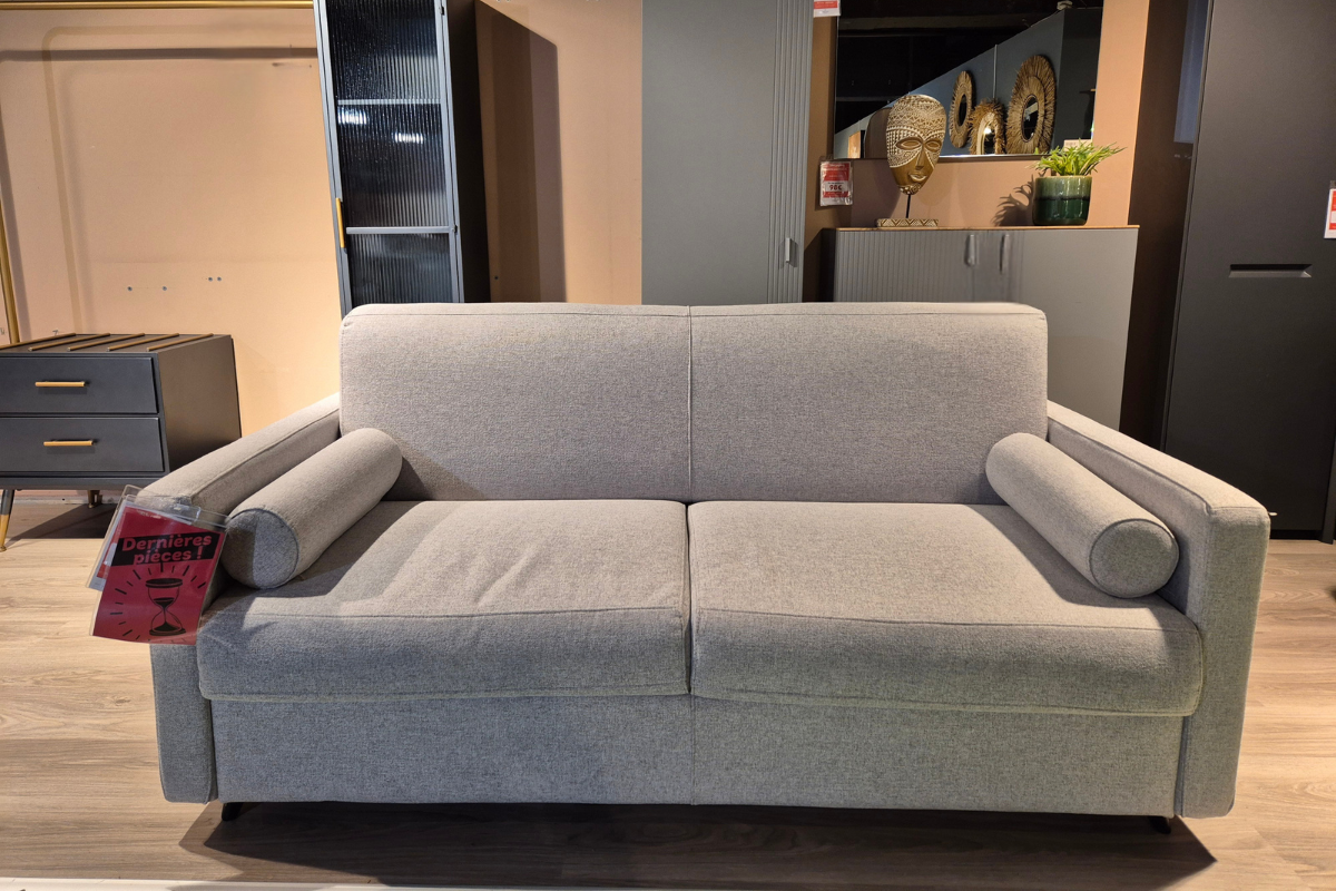 Modèle d'exposition ou stock restant. Le canapé-lit NEXT est un modèle 3 places recouvert d'un tissu couleur Silver. Il repose sur des pieds finition bois naturel, ce qui en fait un canapé-lit très esthétique. Il est équipé d'un matelas de 140*195cm d'une hauteur de 17cm. Venez le découvrir dans notre showroom Meubles Belot à Soignies.