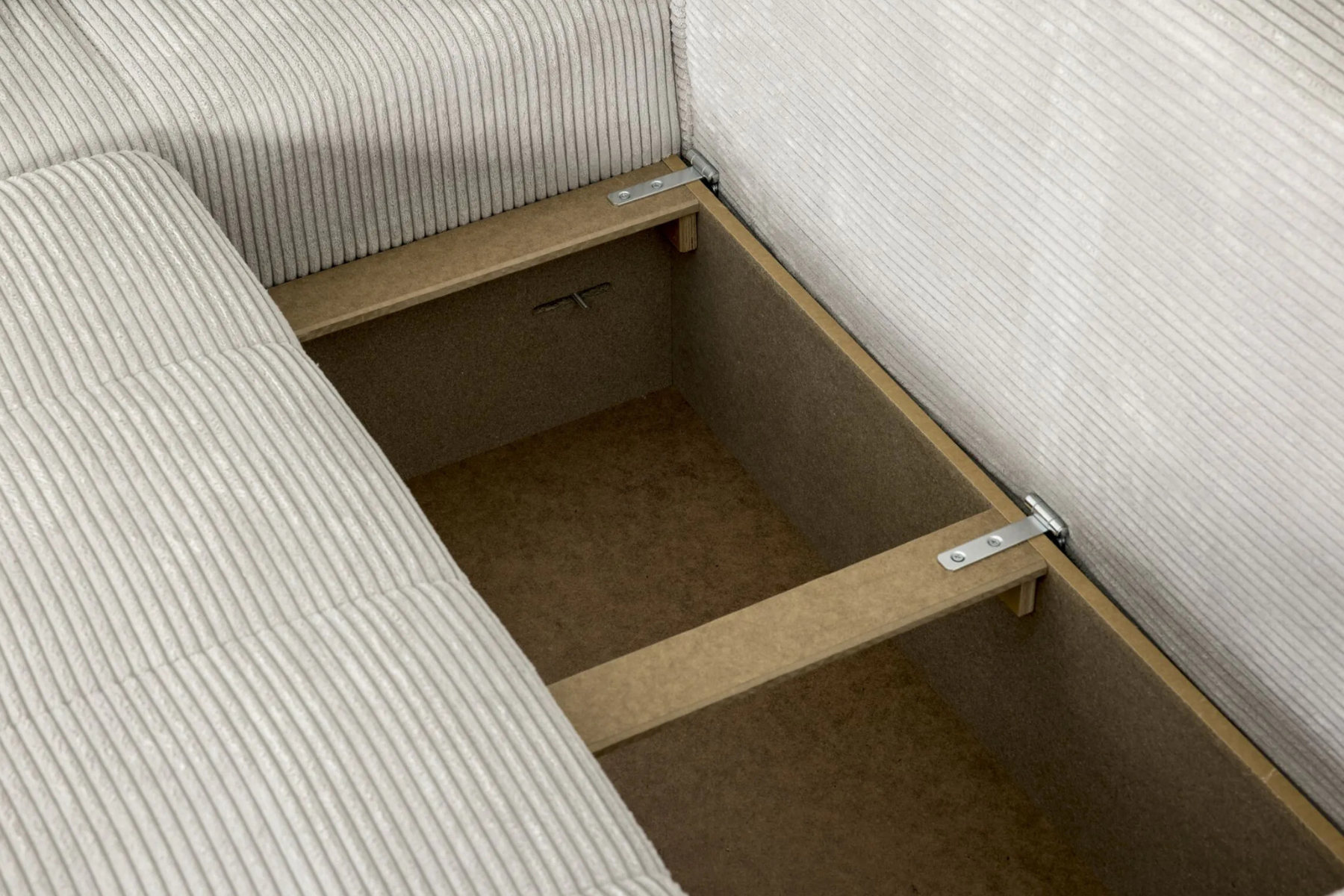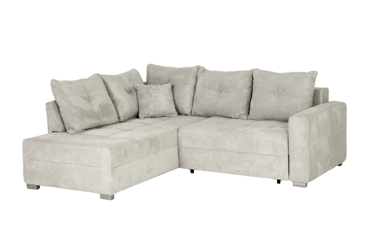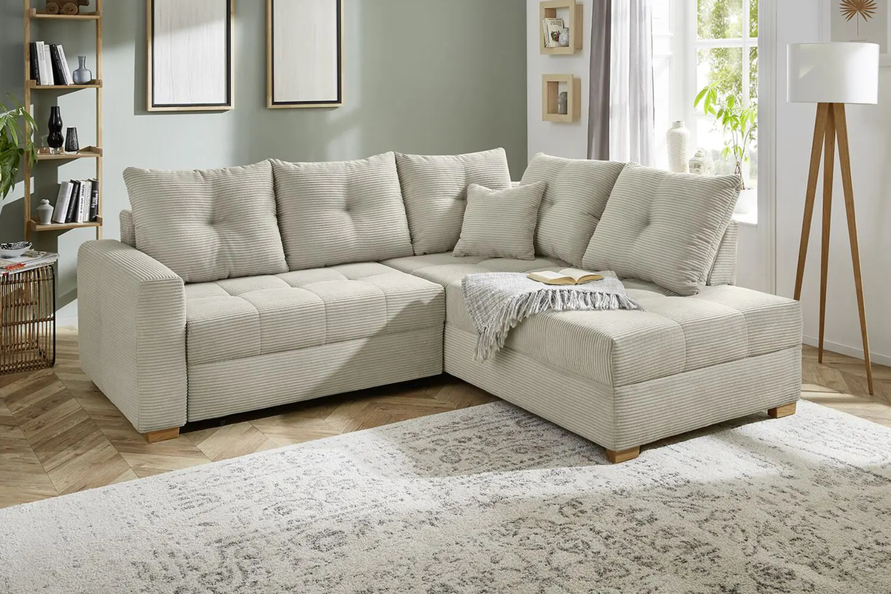 Le canapé-lit SUNSET en tissu beige a un angle réversible. Grâce à son assise coulissante, il se transforme facilement en couchage 160*220cm, parfait comme lit d'appoint. Il intègre également un coffre de rangement spacieux et discret : un vrai gain de place pour y dissimuler vos couettes, plaids et oreillers. Niveau confort, le topper est inclus, tandis que la présence de ressorts ensachés dans les assises et dossiers permet un soutien confortable. La gamme de canapés-lits est à retrouver chez Meubles Belot.