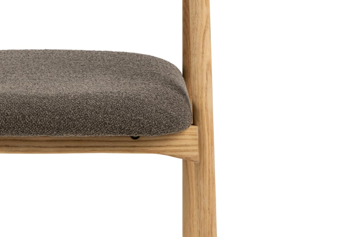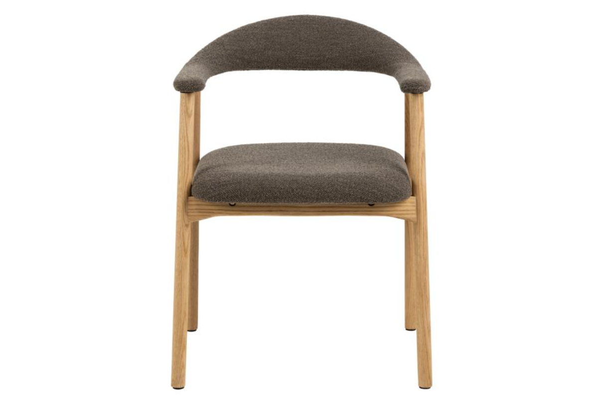 La chaise ADDI avec accoudoirs allie confort et élégance, avec son tissu Monza taupe et sa base en chêne huilé. Un design naturel et raffiné, parfait pour la salle à manger. Disponible chez Meubles Belot, votre référence en mobilier de qualité.
