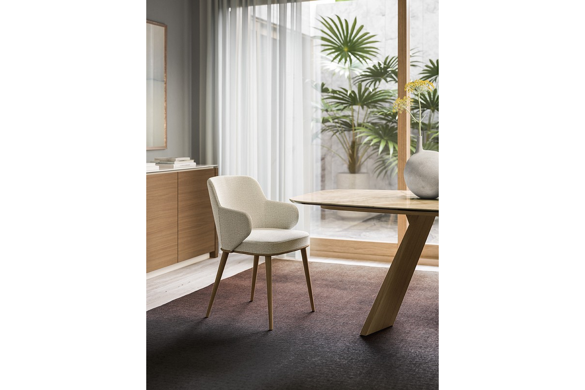 Prix donné pour une chaise avec une assise en tissu et des pieds en frêne.