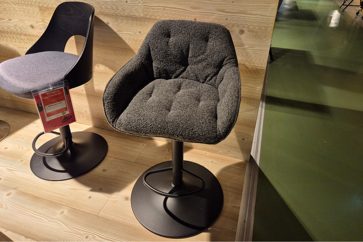 Modèle d'exposition ou stock restant. Tabouret de bar BROOKE en tissu doux Monza couleur anthracite : l'indispensable d'une cuisine moderne. Venez le découvrir dans notre showroom Meubles Belot à Soignies.
