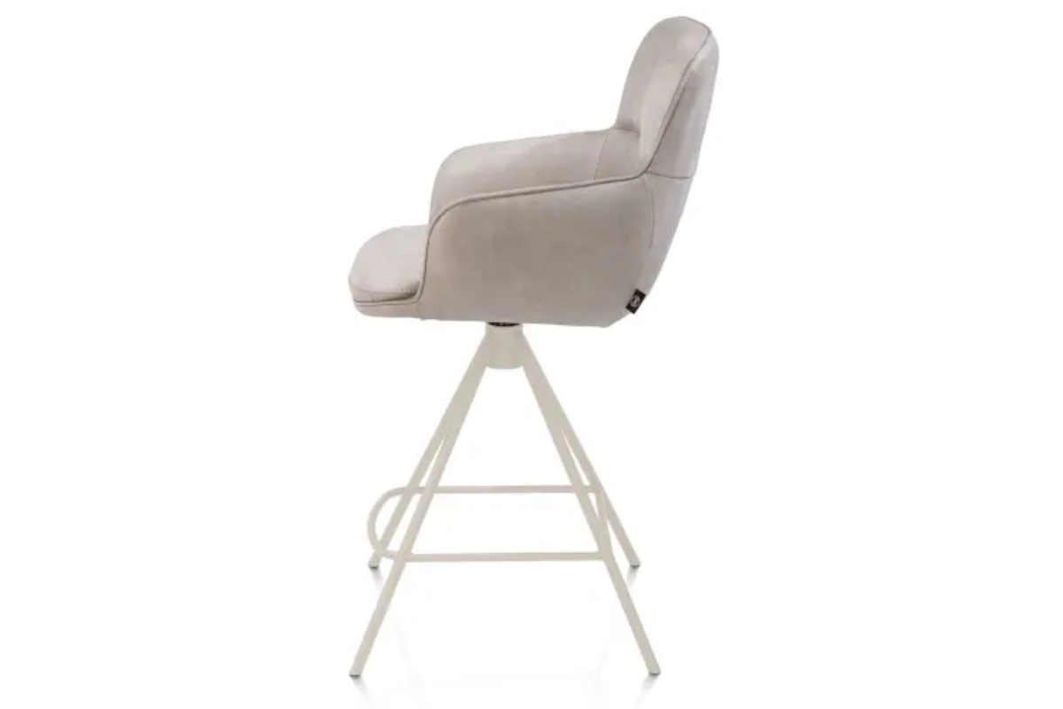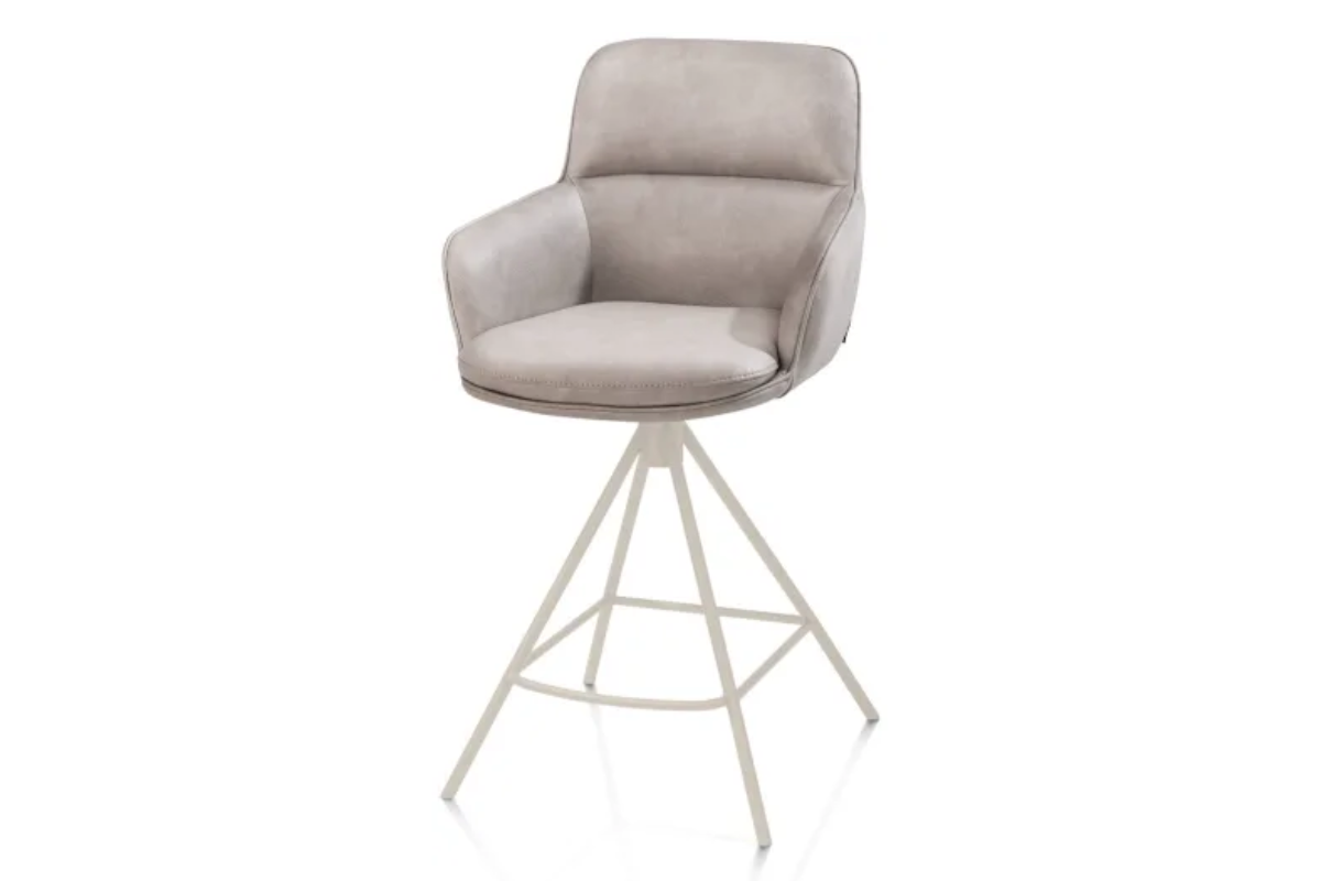 La chaise haute Mateo séduit par son design moderne avec sa structure à 4 pieds couleur crème, apportant une touche douce et lumineuse à votre intérieur. Son revêtement en tissu Pala gris clair renforce cette ambiance élégante et apaisante, idéale pour un espace bar ou une cuisine. Confortable et stable, elle allie style et praticité au quotidien. À découvrir chez Meubles Belot.