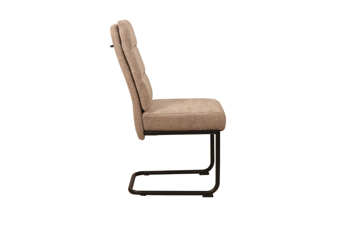 Cette chaise Kathleen est composée d'une assise en tissu de couleur taupe et de pieds en métal noir. Le rembourrage épais du siège et du dossier garantit un confort optimal, tandis que la structure sans pieds arrière apporte une touche de légèreté et de dynamisme à l'ensemble. Venez la découvrir dans notre showroom Meubles Belot à Soignies.