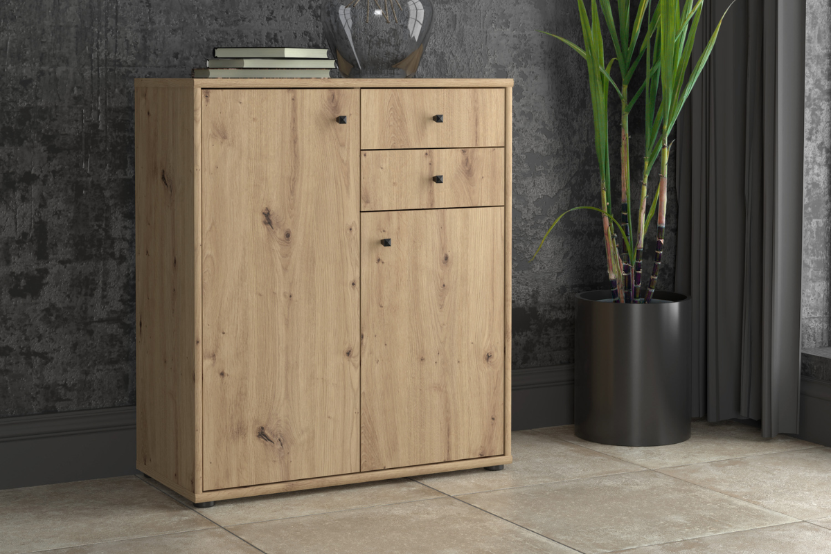 La commode Soft (73,7 × 85,5 × 34,8 cm) séduit par son design compact et naturel. Sa finition chêne artisan apporte chaleur et authenticité à votre intérieur. Avec ses 2 portes et 2 tiroirs, elle offre un espace de rangement pratique et bien organisé, idéal pour optimiser les petits espaces. Un meuble fonctionnel et intemporel, parfait pour compléter votre intérieur. À découvrir chez Meubles Belot.