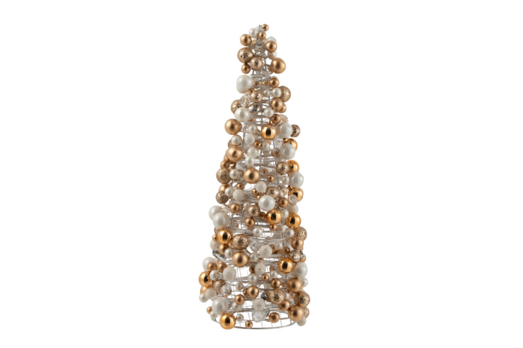 Sublimez votre intérieur avec le cône décoratif de Noël orné de mini boules écrues et dorées. Une pièce élégante et scintillante qui apportera une touche festive et raffinée à votre décoration, à découvrir chez Meubles Belot.
