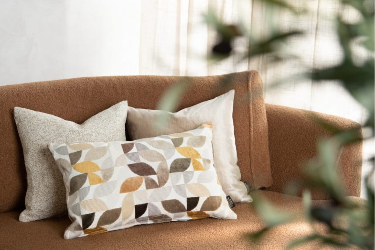 Le coussin Elite Crème apporte une touche graphique et raffinée à votre intérieur, avec son motif géométrique de courbes entrelacées décliné dans une palette naturelle de crème, taupe, chocolat et ocre doré. Sa texture veloutée aux jeux de matières crée un relief subtil qui invite à la douceur. Un accessoire déco à la fois élégant et chaleureux, à venir découvrir dans notre showroom chez Meubles Belot.