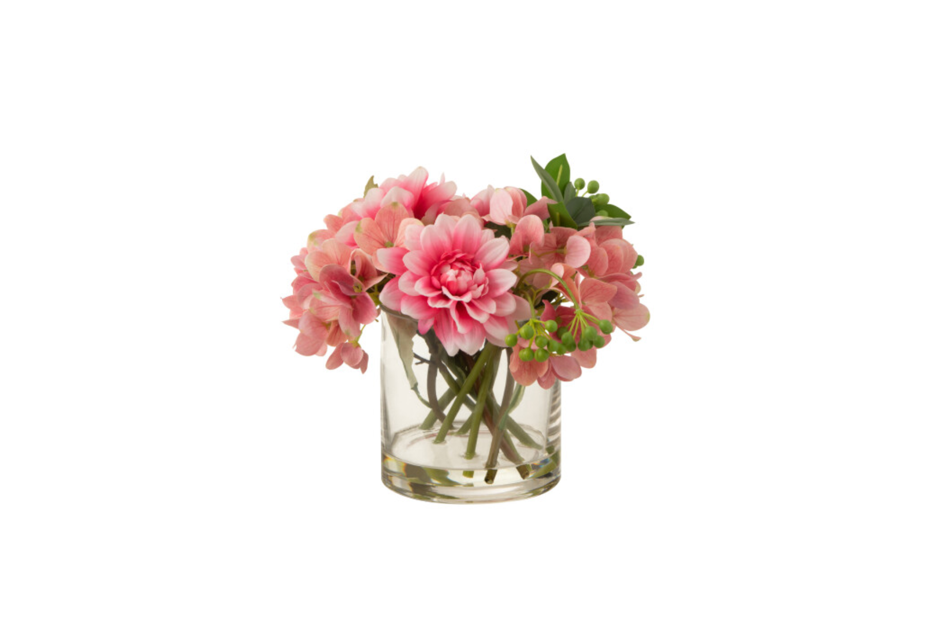 DAHLIA/HORTENSIA DANS VASE ROSE