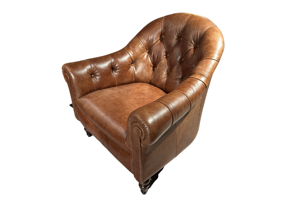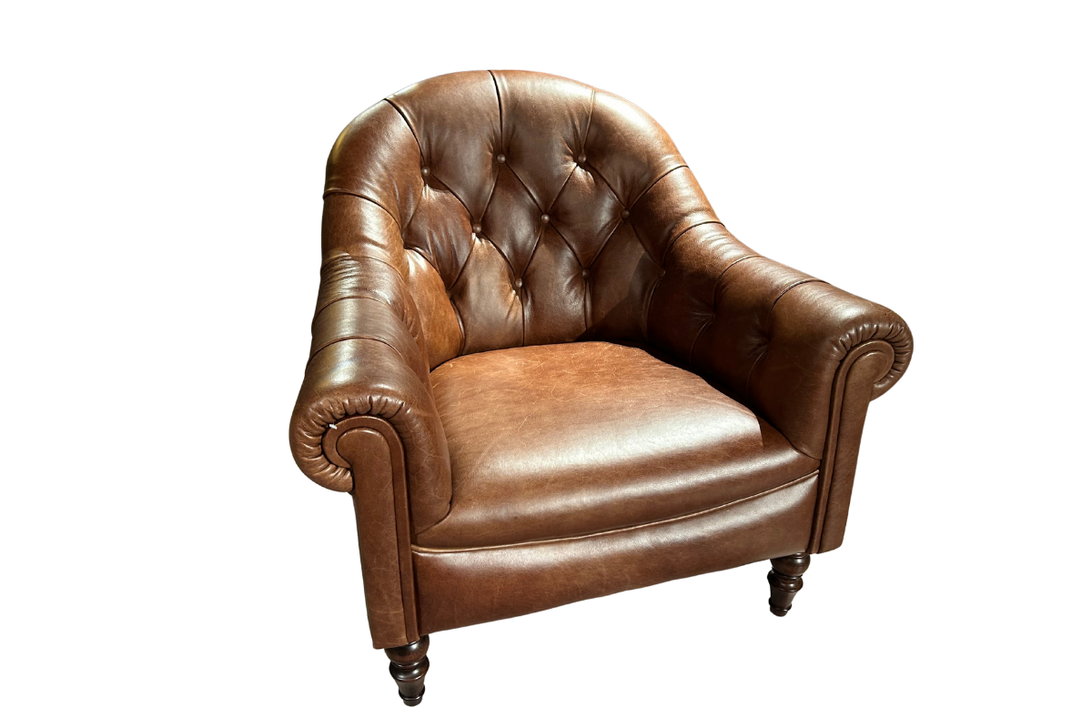 Plongez dans l’élégance intemporelle avec le fauteuil BEATON. Revêtu de cuir Sadler Walnut Cat Hide D, il séduit par son style classique capitonné et son confort enveloppant. Ses accoudoirs roulés et ses pieds tournés en bois brun foncé renforcent son allure raffinée et authentique. Idéal pour un salon chic ou un coin lecture chaleureux, ce fauteuil allie caractère, confort et durabilité. Une pièce de charme à découvrir chez Meubles Belot.