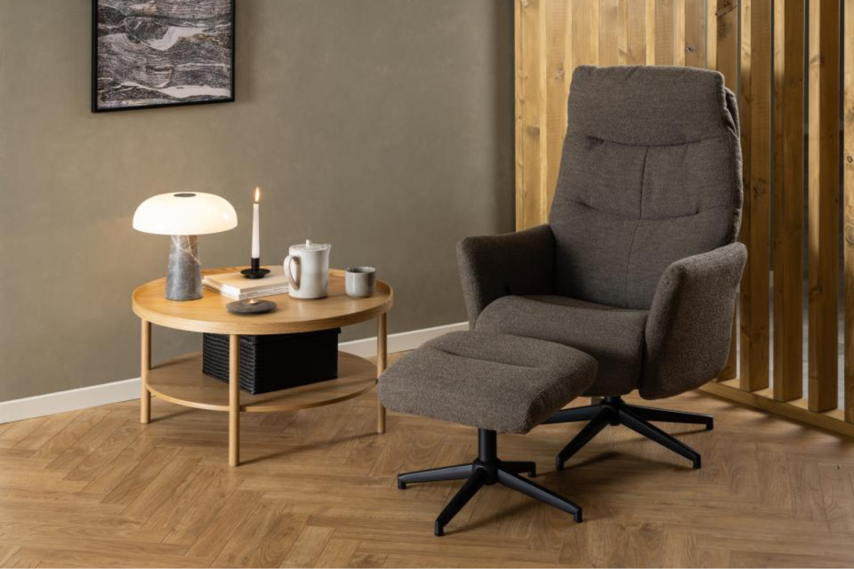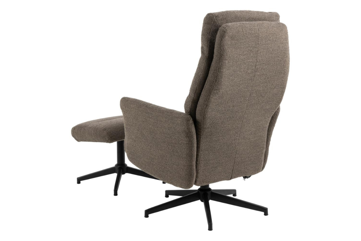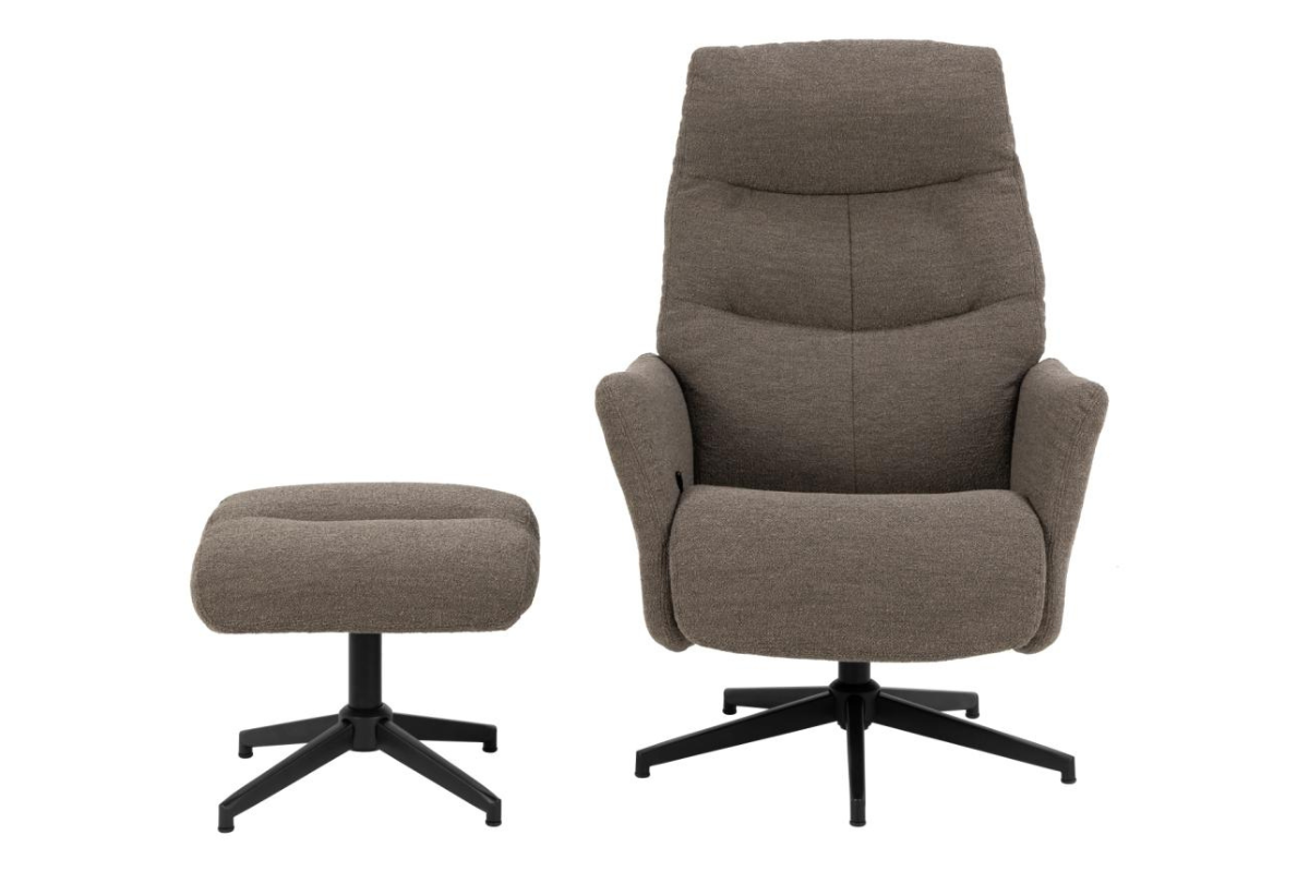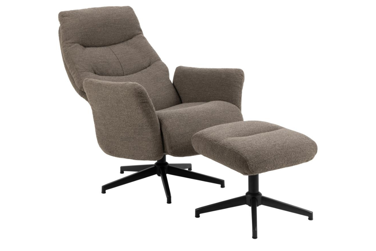 Le fauteuil avec pouf LONDON conjuguent avec design contemporain et confort. Revêtus d’un tissu taupe sobre et chaleureux, ce modèle s'intègre facilement dans tous les intérieurs. Le pied noir souligne une silhouette moderne tandis que le mécanisme d'inclinaison manuel du fauteuil offre un confort appréciable. Idéal pour aménager un espace détente à la fois stylé et fonctionnel, cet ensemble invite à la relaxation. Venez l’essayer chez Meubles Belot et laissez-vous séduire.