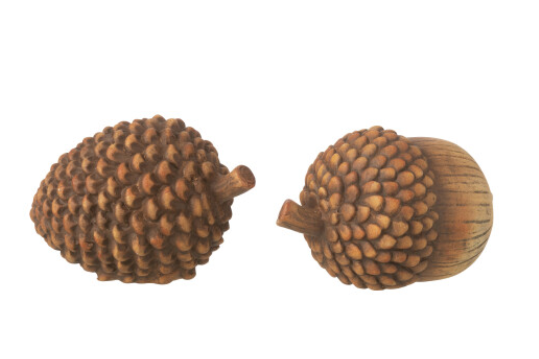 Cet assortiment de 2 décorations en porcelaine — un gland et une pomme de pin — évoque la chaleur et l’esprit naturel de l’automne. Leurs teintes marron nuancées s’accordent parfaitement à une déco rustique et authentique, à découvrir chez Meubles Belot.
