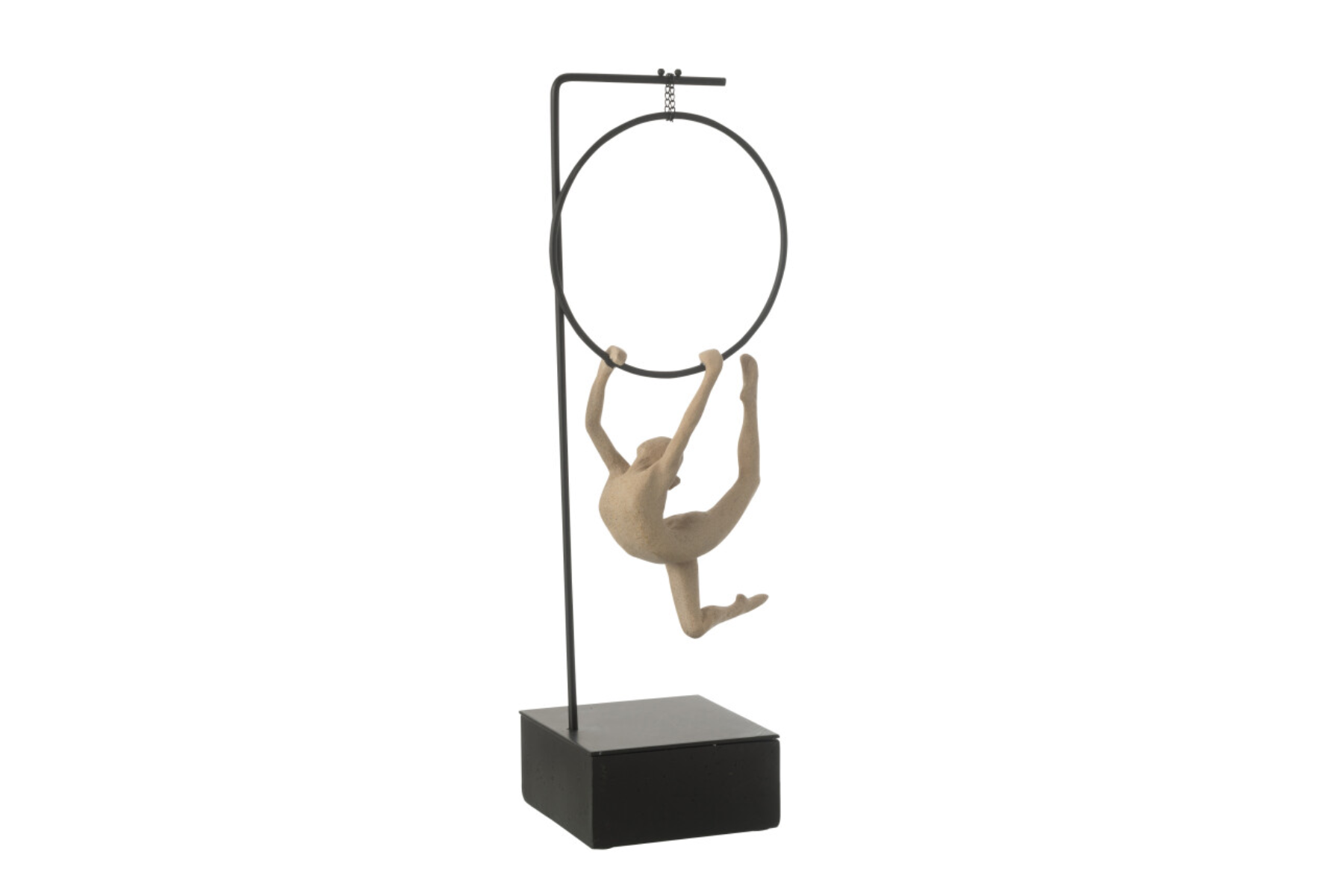 Le gymnaste Cerceau Alpha en résine beige et noir capture l’élégance du mouvement et la grâce du corps en suspension. Une sculpture moderne et dynamique, parfaite pour apporter une touche artistique et inspirante à votre intérieur, à découvrir chez Meubles Belot.