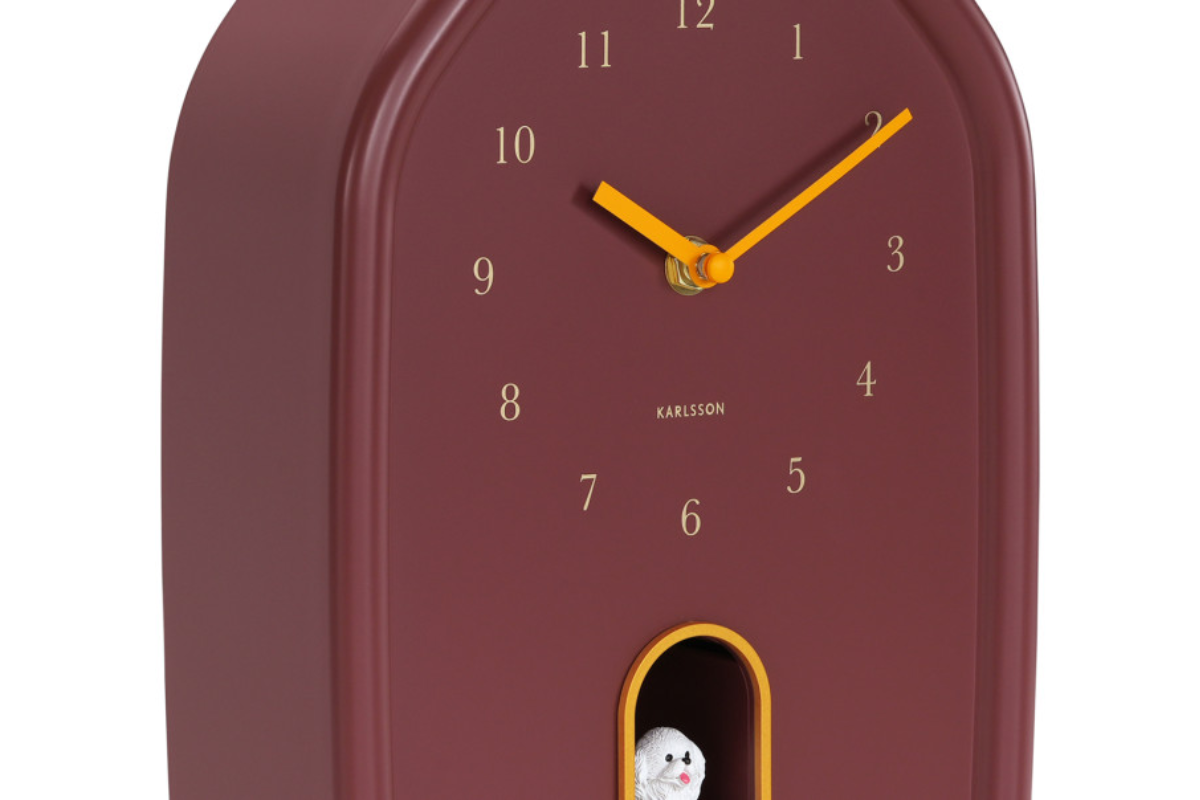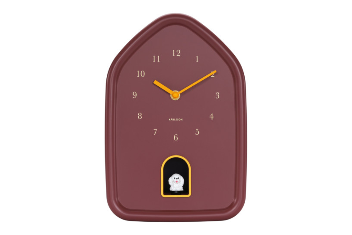 L’Horloge Murale Modern Doggy Burgundy apporte une touche originale et design à votre intérieur. Avec sa finition bordeaux élégante et son petit chien qui sort, elle revisite l’horloge coucou de façon moderne et ludique. Une pièce décorative pleine de caractère, à découvrir chez Meubles Belot.