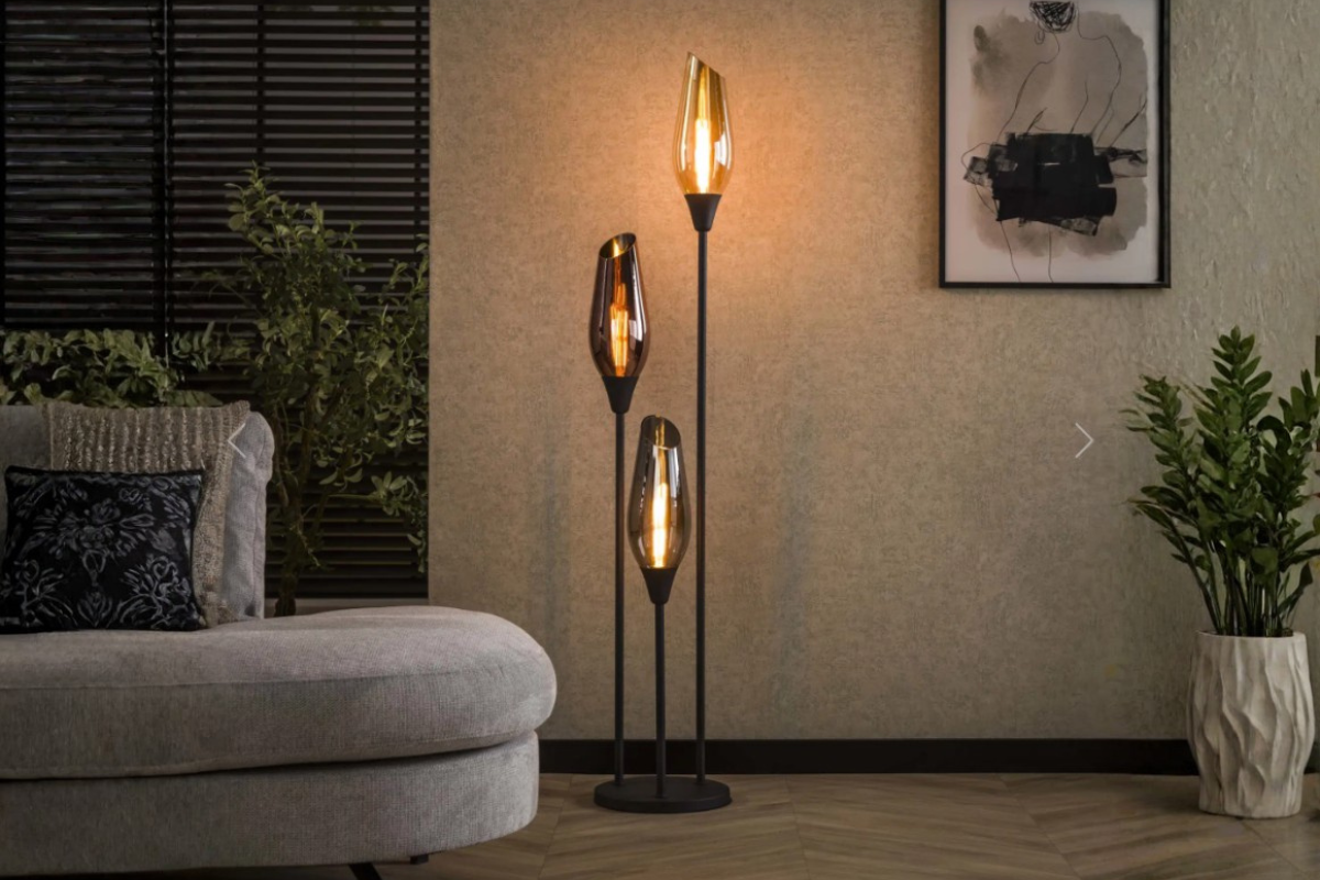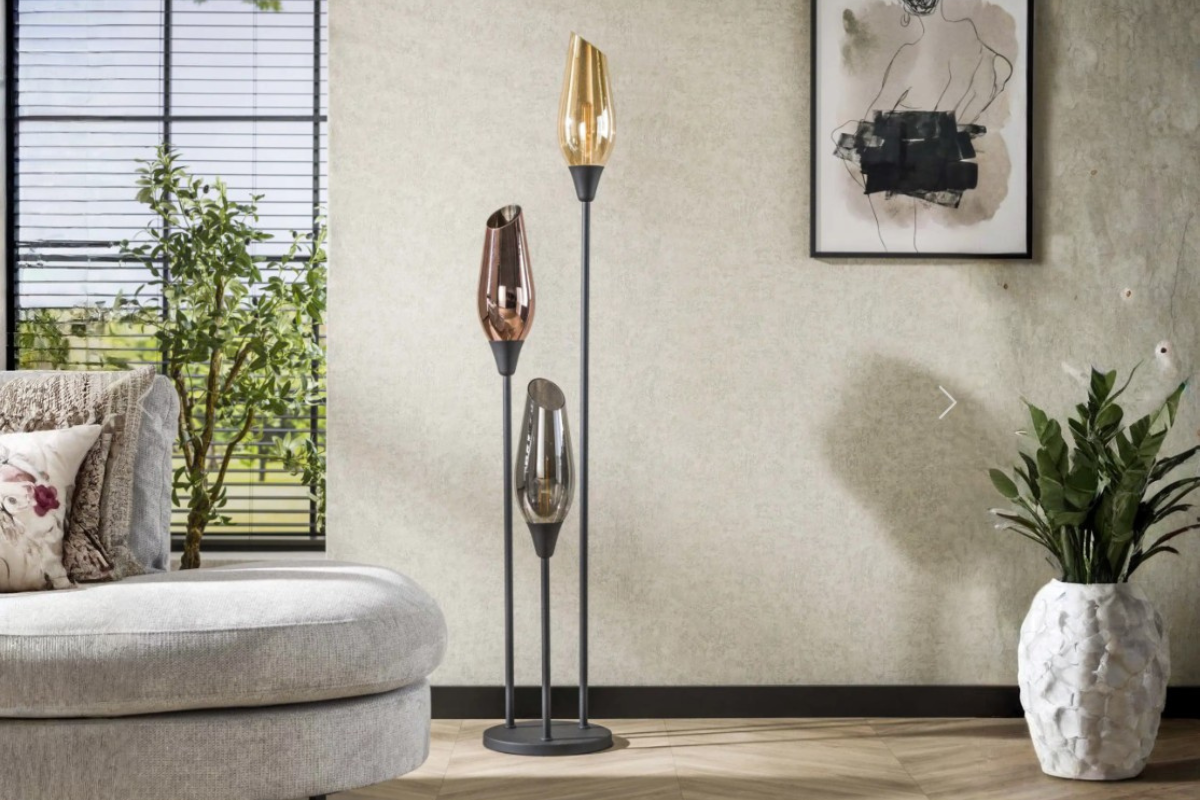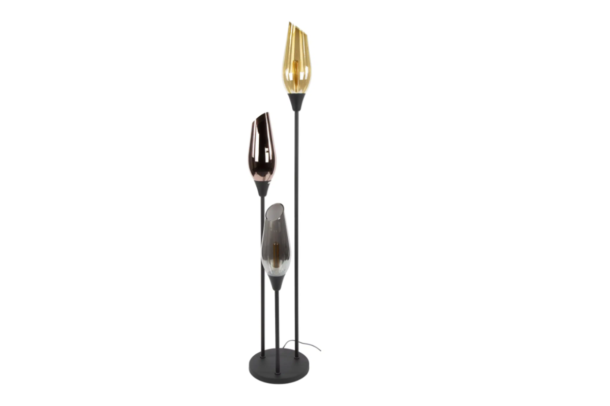 Le lampadaire Cocoon apporte une touche décorative forte grâce à sa base en métal noir et ses trois abat-jour en verre aux teintes ambre, cuivre et chrome. Un jeu de transparence et de lumière qui crée une ambiance chaleureuse, idéale pour le salon, l’entrée ou la chambre. Un lampadaire à découvrir chez Meubles Belot.