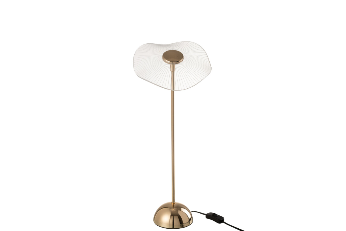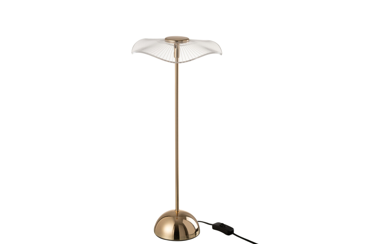 La lampe LED Fleur en métal et plastique finition or (large) illumine votre intérieur avec élégance. Son abat-jour en forme de pétale diffuse une lumière douce et design, idéale pour une ambiance chaleureuse et raffinée. À découvrir chez Meubles Belot.