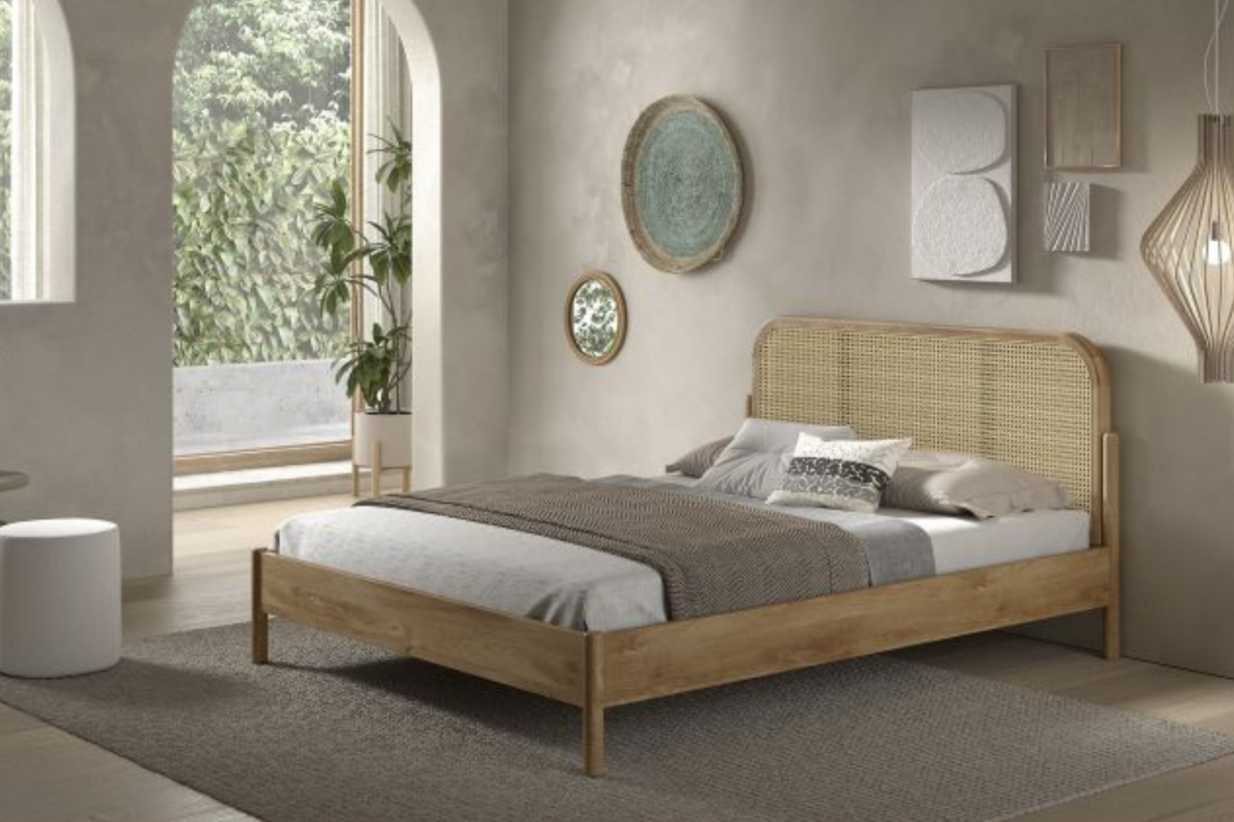 Le lit Olive 160 × 200 cm séduit par son style naturel et tendance. Sa tête de lit en rotin aux formes arrondies, associée à l’aspect chêne, crée une ambiance chaleureuse et apaisante. Spacieux et élégant, il s’intègre facilement dans une chambre contemporaine ou bohème, à découvrir chez Meubles Belot.