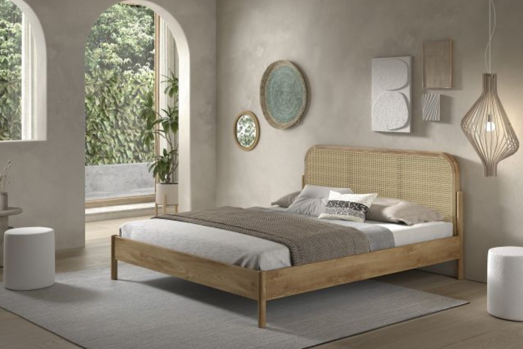 Le lit Olive 180 × 200 cm séduit par son style naturel et tendance. Sa tête de lit en rotin aux formes arrondies, associée à l’aspect chêne, crée une ambiance chaleureuse et apaisante. Spacieux et élégant, il s’intègre facilement dans une chambre contemporaine ou bohème, à découvrir chez Meubles Belot.