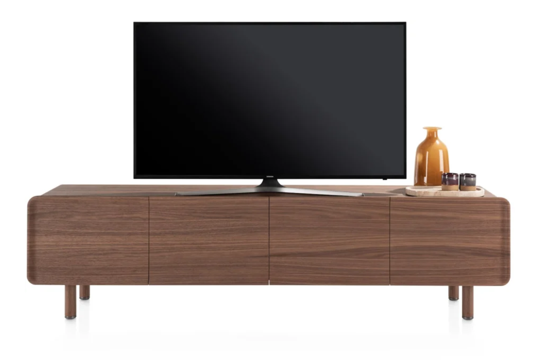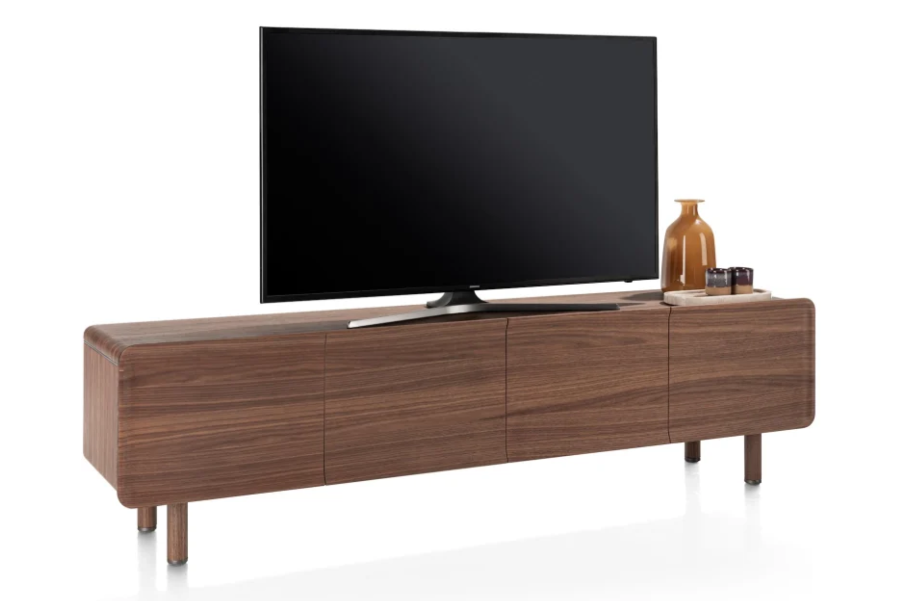 Le meuble TV Brianza 210 cm séduit par son design contemporain sublimé par un élégant placage de noyer. Ses 4 portes offrent un bel espace de rangement, tandis que son piétement assorti assure une esthétique cohérente et raffinée. Pour encore plus de légèreté visuelle, il peut également être suspendu au mur, apportant une touche moderne à votre intérieur, à découvrir chez Meubles Belot.