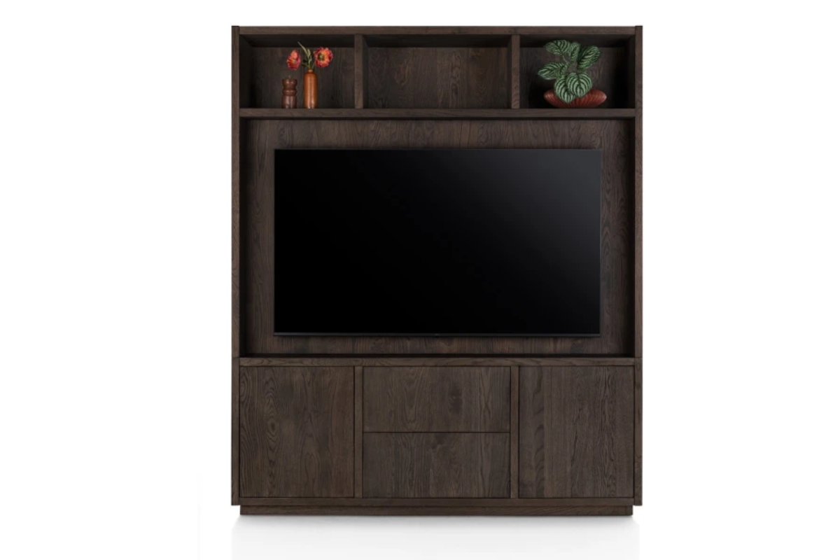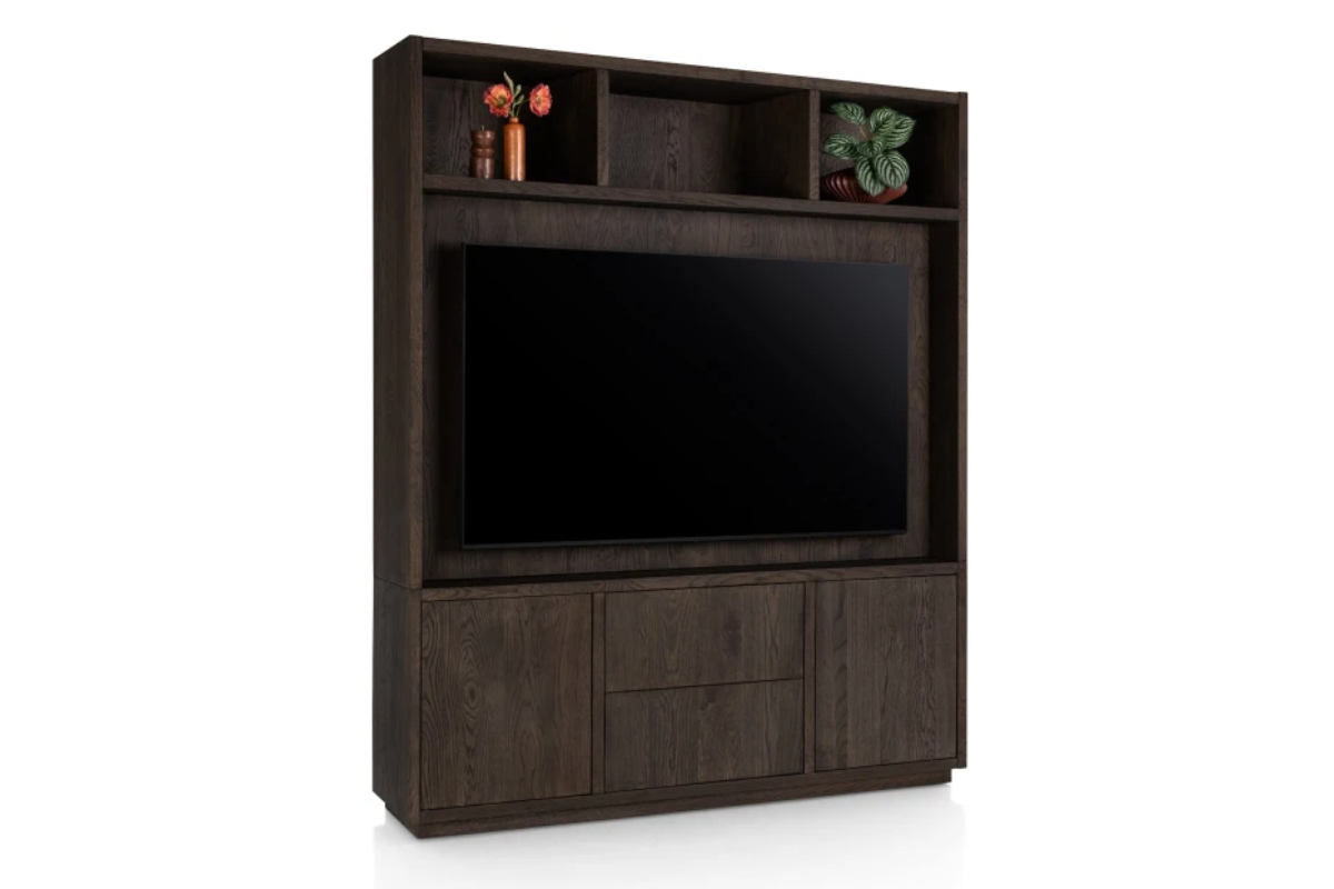 Le meuble TV Gijon 180 cm séduit par son style moderne et ses finitions soignées. Il dispose de 2 portes et 2 tiroirs avec système soft-closing, offrant un rangement pratique et discret pour votre espace multimédia. Réalisé en placage chêne couleur basalt avec laque platine mate, il bénéficie d’un vernis protecteur supplémentaire pour une meilleure durabilité. Ce meuble fait partie de la collection Gijon, à découvrir chez Meubles Belot.