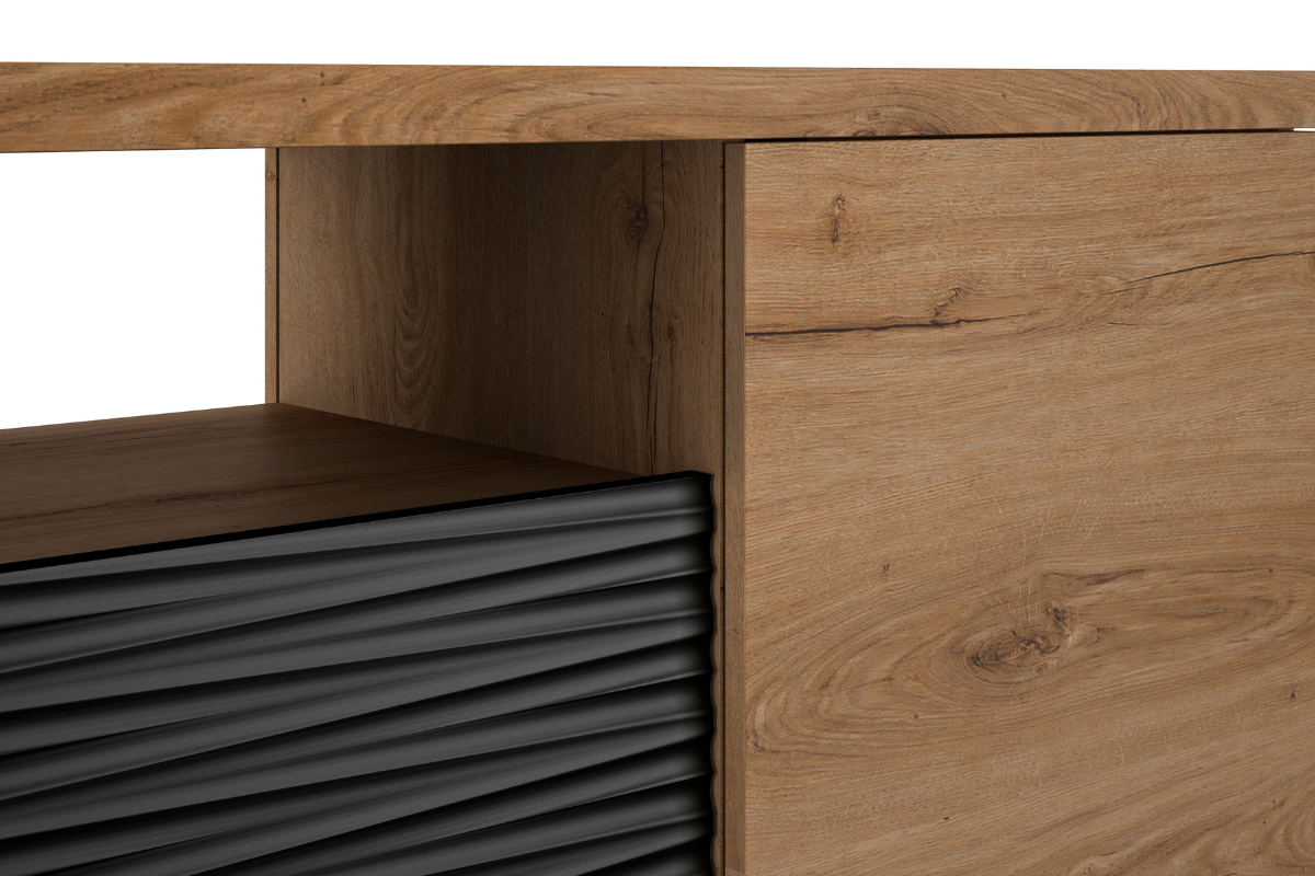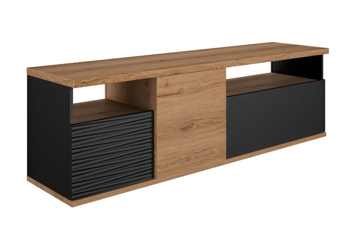 Alliez modernité et fonctionnalité avec le meuble TV Otello (182x57x47 cm). Son design épuré en noir mat et décor bois apporte une touche contemporaine et chaleureuse à votre salon. Pratique, il offre plusieurs espaces de rangement pour vos équipements multimédias, à découvrir chez Meubles Belot.