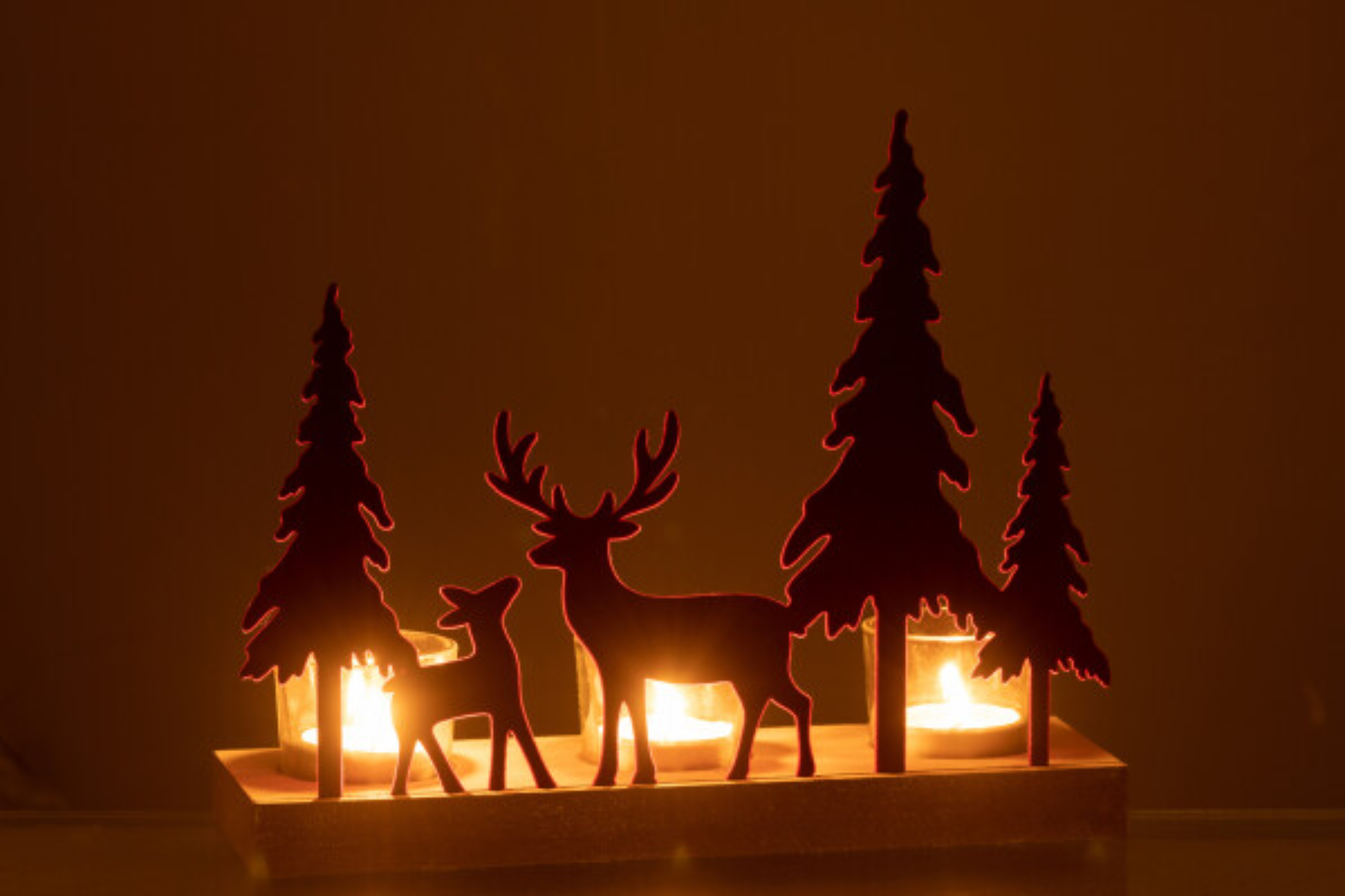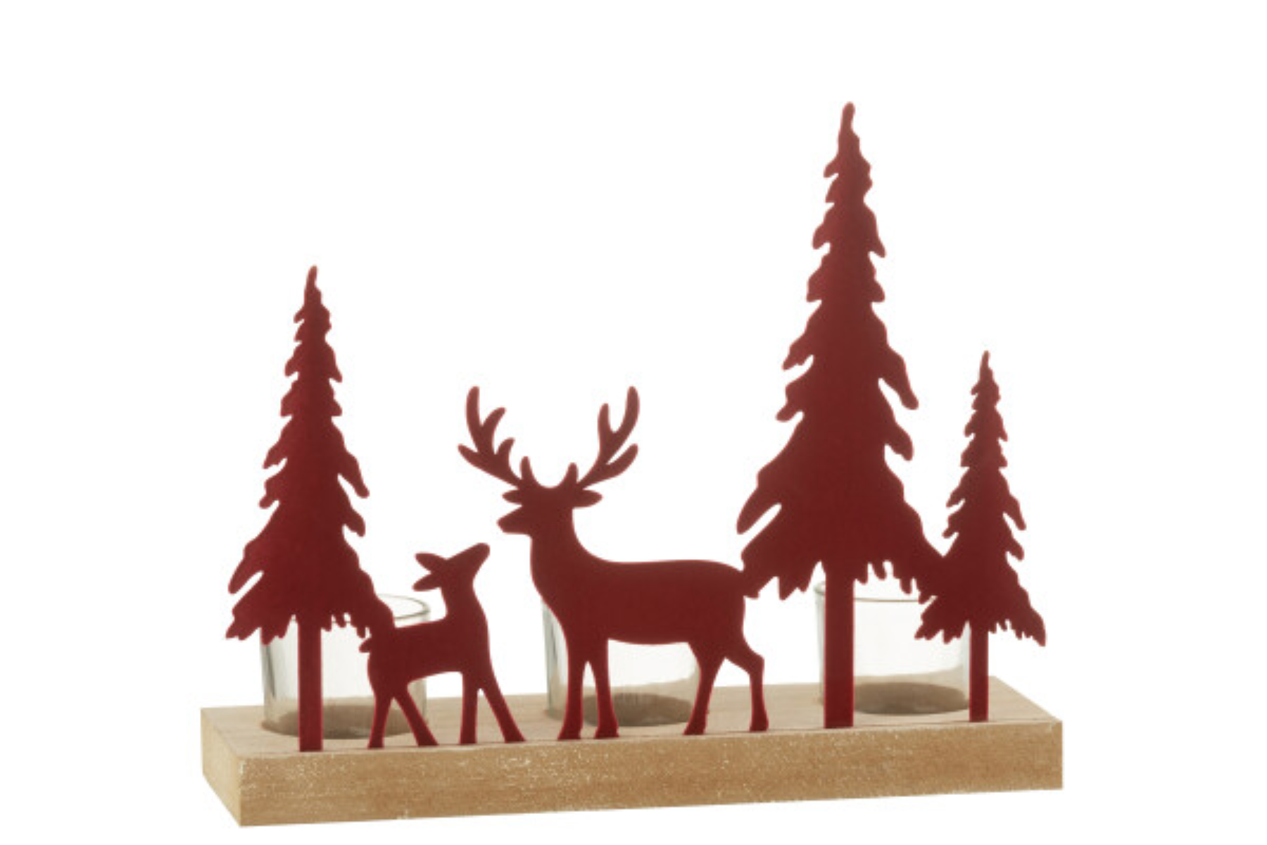 Créez une ambiance chaleureuse et festive avec le photophore 3 rennes et sapins de Noël en bois et métal velours rouge foncé. Sa finition douce et ses silhouettes élégantes diffusent une lumière tamisée idéale pour les soirées d’hiver, à retrouver chez Meubles Belot.