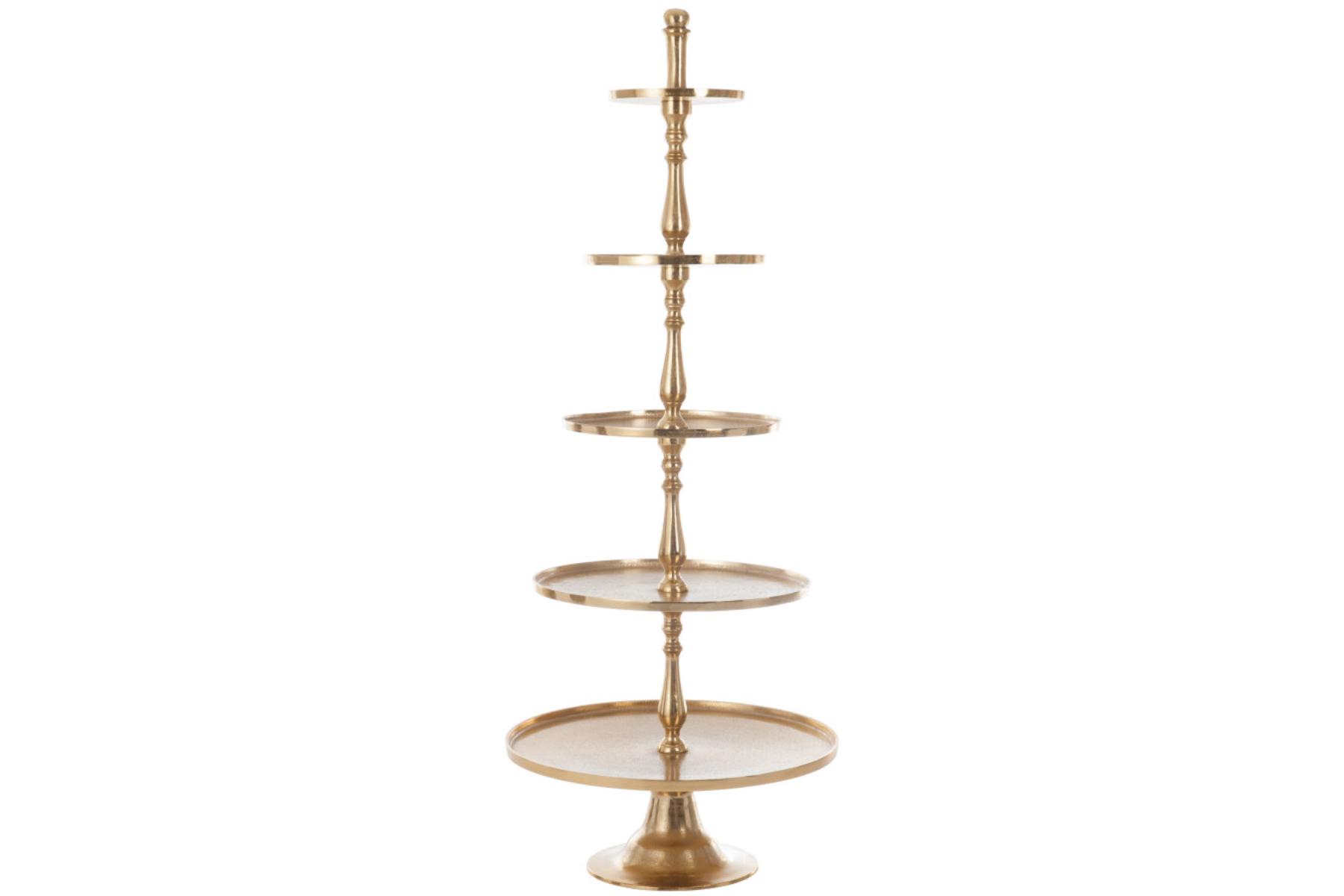 Ce somptueux plateau à 5 niveaux en aluminium doré allie élégance et fonctionnalité. Parfait pour présenter vos pâtisseries, fruits ou décorations de fête, il devient une pièce maîtresse sur votre table ou buffet. Sa finition dorée apporte une touche raffinée et festive à votre intérieur, à découvrir chez Meubles Belot.