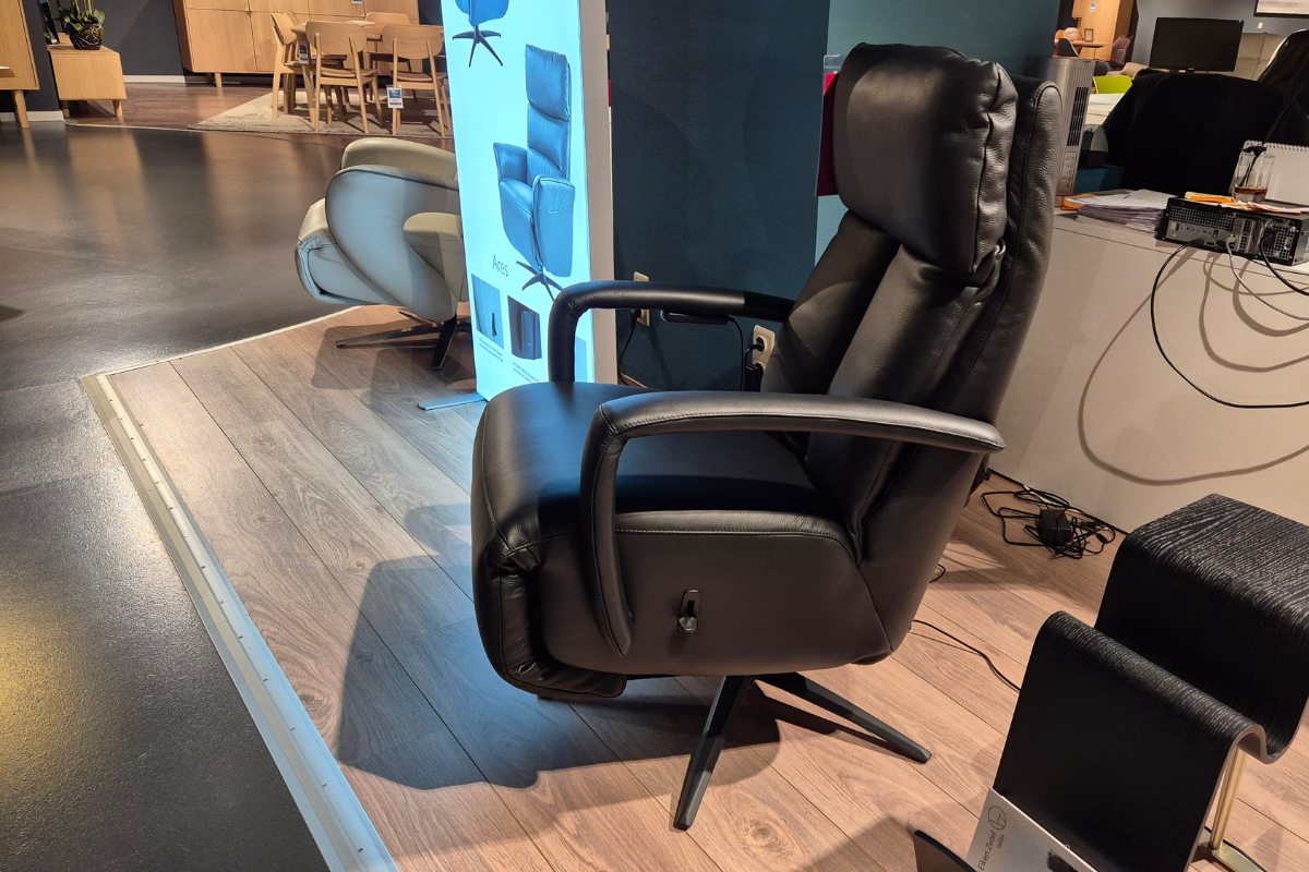 Modèle d'exposition ou stock restant. Le fauteuil relax Anti Stress Linus, en cuir C Corso Full Cloud, allie design et innovation. Monté sur un pied tournant, il est équipé de 2 moteurs et de la fonction Zero Gravity, offrant un confort optimal et une sensation d’apesanteur. Il est équipé d'un système d'accus intégré. L’élégance et la détente réunies, à découvrir chez Meubles Belot.