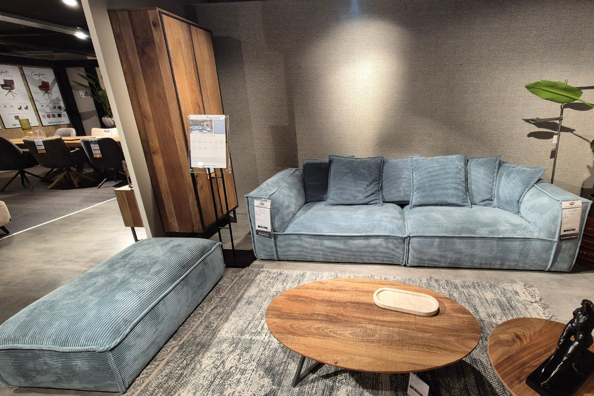 Modèle d'exposition. Cette composition du salon modulaire Bayonne de Henders & Hazel peut aisément accueillir 4 personnes. Présenté en velours côtelé pour un rendu à la fois doux et original, il peut être décliné en toute une série de tissus et couleurs. Grâce à son rembourrage, il est extrêmement confortable. Il s'agit d'un modèle ludique que vous créez et composez selon vos envies, ici proposé en 2 modules indépendants de2 places et 1 pouf rectangulaire, tous équipés d'antidérapants. Venez le découvrir dans notre showroom Meubles Belot à Soignies.