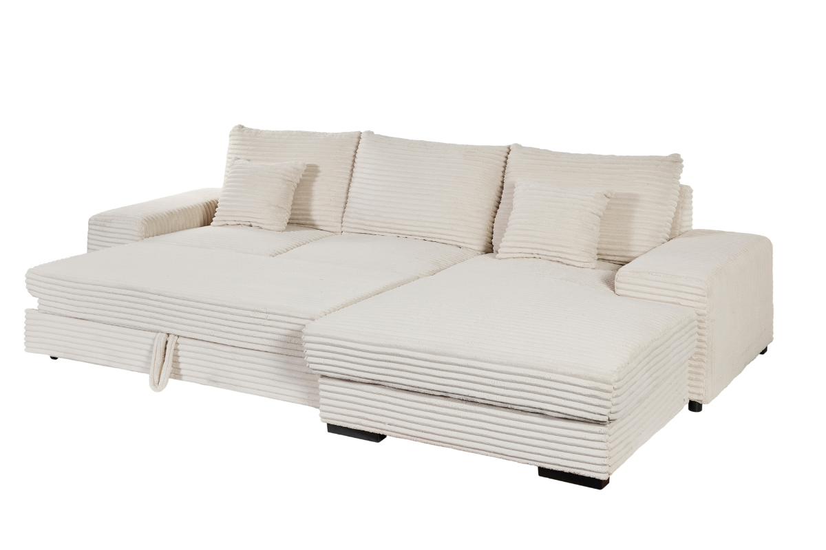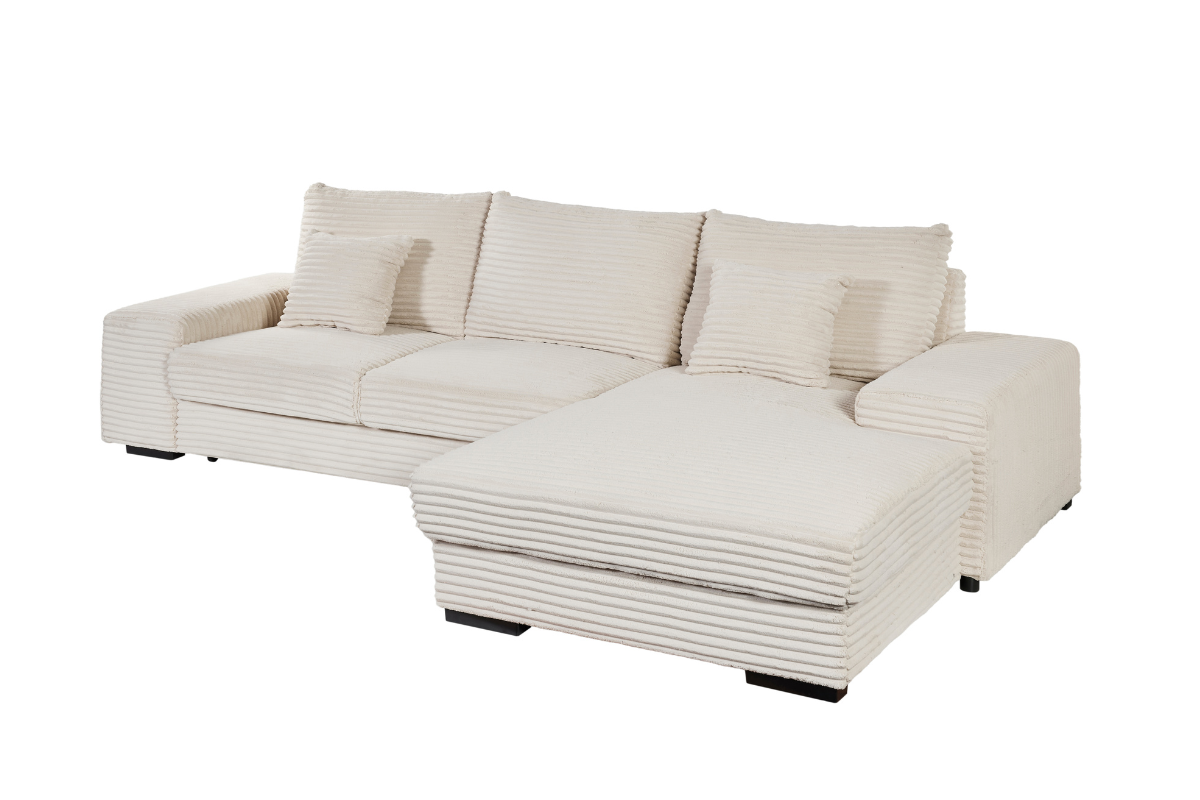 Le salon Nevada allie confort et esthétique grâce à son tissu chenille côtelé Ambiente Cream, doux au toucher et chaleureux à l’œil. Son angle à droite optimise l’espace de votre salon tout en offrant une assise généreuse. Modulable en couchage, il se transforme en un lit d’appoint spacieux. Les coussins moelleux et l’assise profonde invitent à la détente. Venez le découvrir chez Meuble Belot.