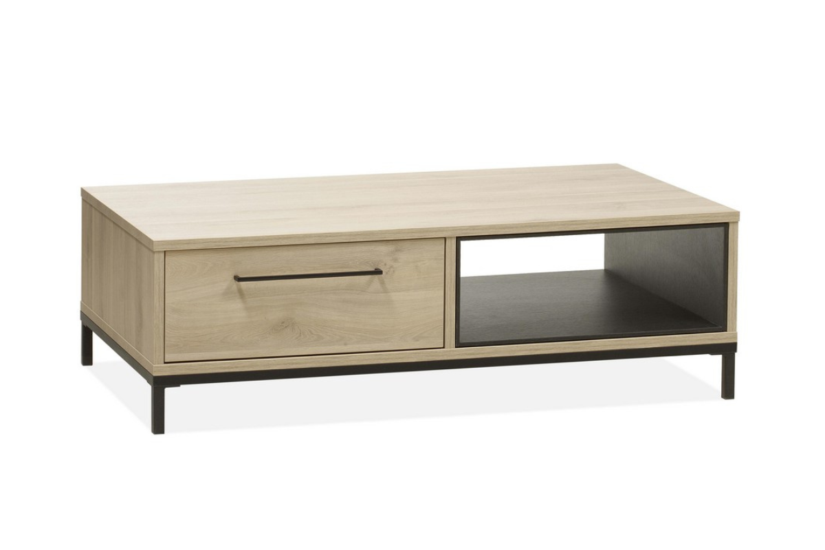 Table basse 1 tiroir et 1 niche de la collection Bridge de Maxfurn en lamulux fresh oak et old piano. Lamulux représente la solution parfaite pour le consommateur qui veut l’expérience d’un matériel massif sans les désavantages de l’entretien et le coût d’un meuble massif. Lamulux a la ressemblance et le même touché que le bois massif ! Pieds en métal noir. Fermeture soft-close. Venez le découvrir dans notre showroom Meubles Belot à Soignies.