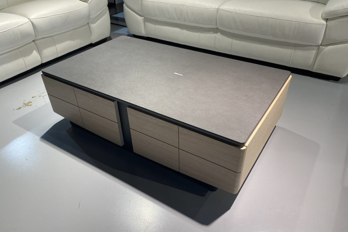 Modèle d'exposition. Table basse Natalina en chêne clair. Celle-ci se compose de 2 tiroirs. Venez le découvrir dans notre showroom Meubles Belot à Soignies.