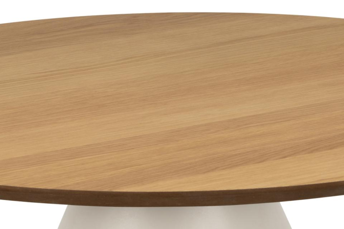 La table basse ronde Soli séduit par son design épuré et moderne. Avec son plateau en chêne mat plaqué et son pied central en métal gris, elle apportera une touche contemporaine à votre salon. À découvrir chez Meubles Belot pour sublimer votre intérieur avec élégance.