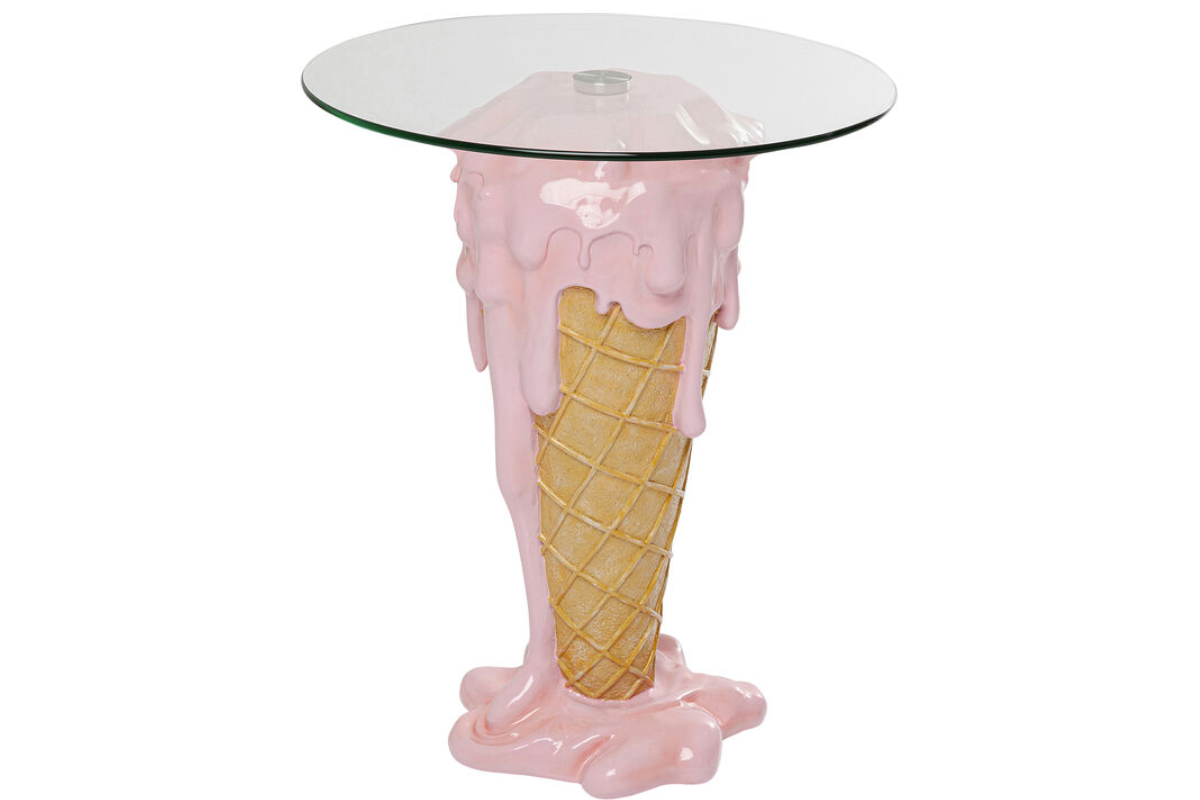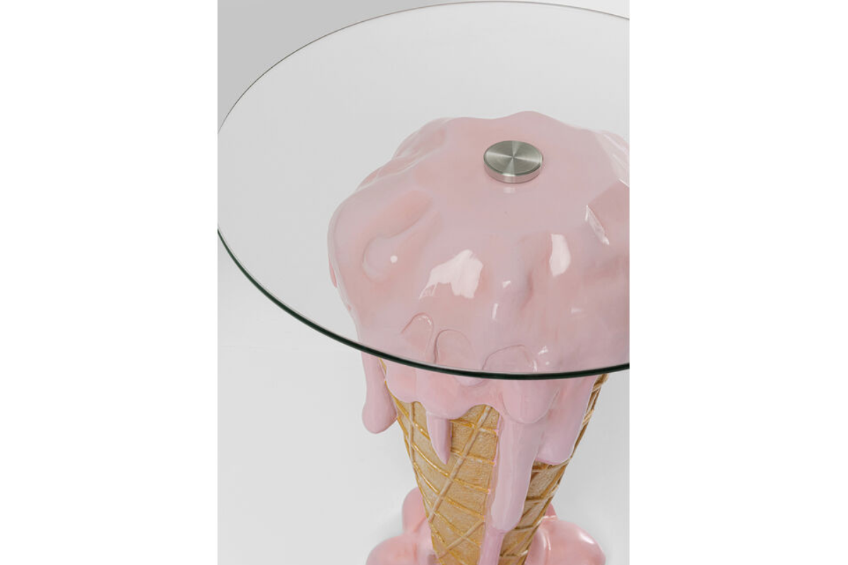 La table d’appoint Ice Cream Pink attire tous les regards avec son design original et ludique. Son pied sculptural en forme de cornet de glace apporte une touche pop et décalée, parfaite pour un intérieur créatif et audacieux. Son plateau rond en verre sécurit offre une surface pratique et facile d’entretien pour vos boissons ou objets déco. Une pièce unique qui devient rapidement le point focal de votre pièce. À découvrir chez Meubles Belot.